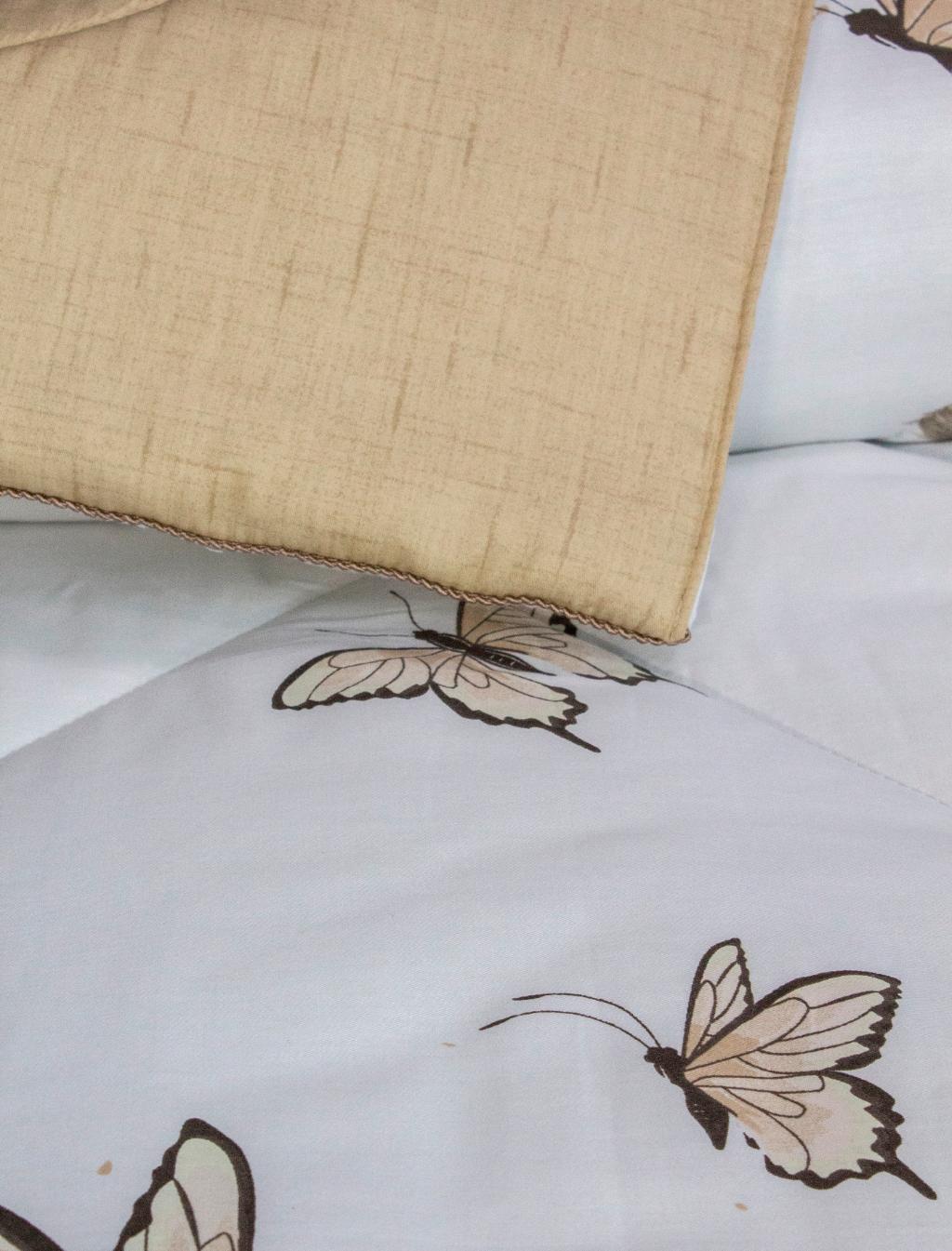 Всесезонная коллекция "Dolce Fiore Cotton" представляет собой комбинацию постельного белья и лёгкого двустороннего одеяла в чехле. В качестве наполнителя одеяла используется эковолокно-микрогель. Наволочки, простыня и чехол одеяла выполнены из сатина (100% хлопок). Изделие неприхотливо в уходе, легко стирается и быстро высыхает.