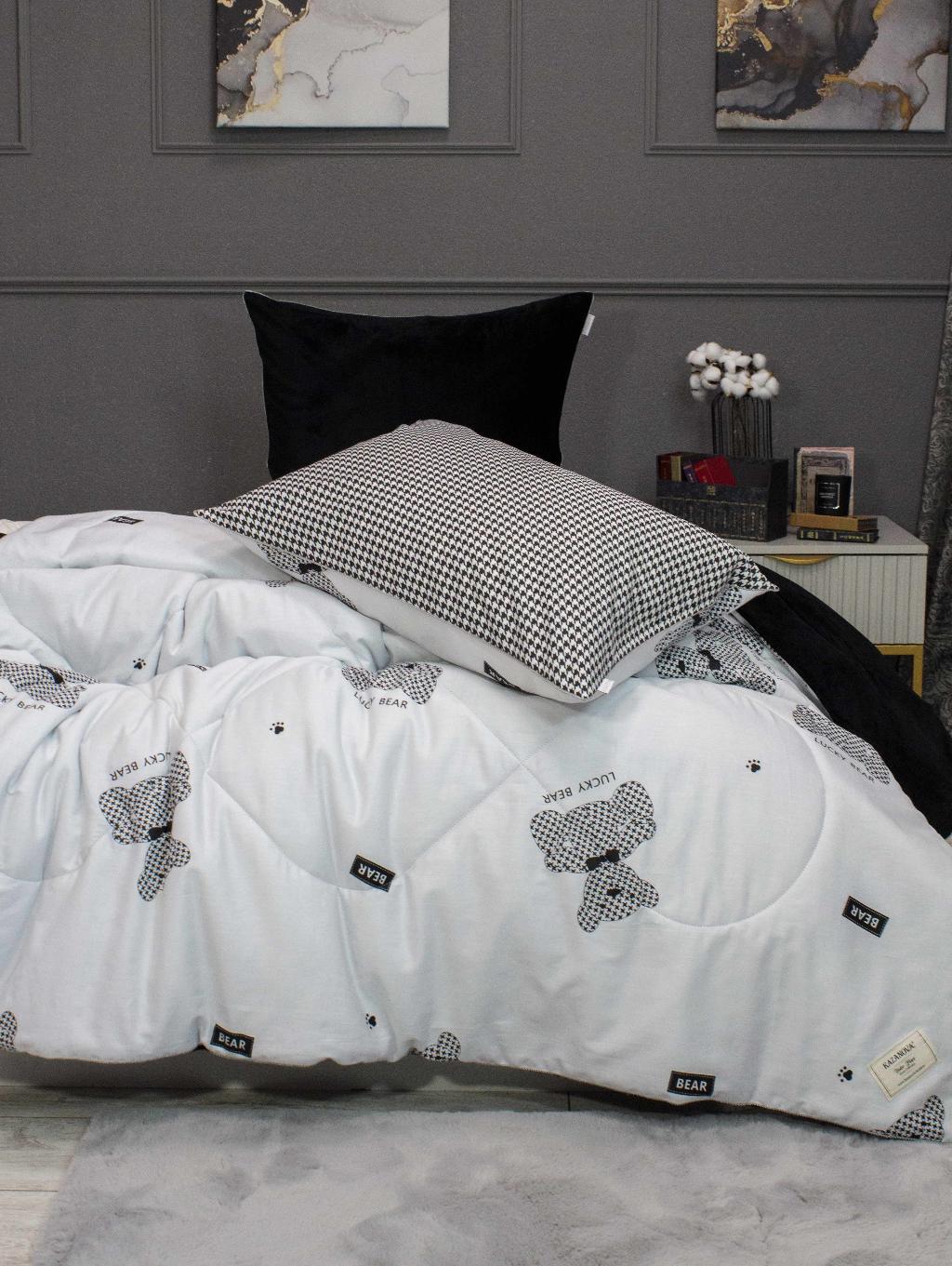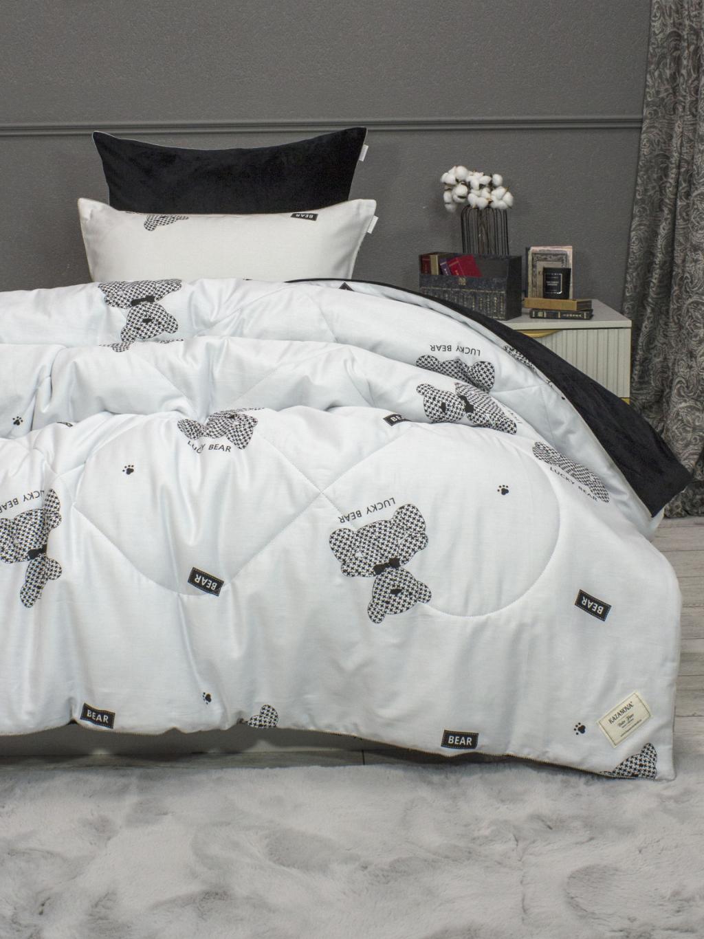 Постельное белье с одеялом "Kazanov.A." Lucky Bear (жемчуг графит) Велюр/Egypt Cotton, 1,5 спальный