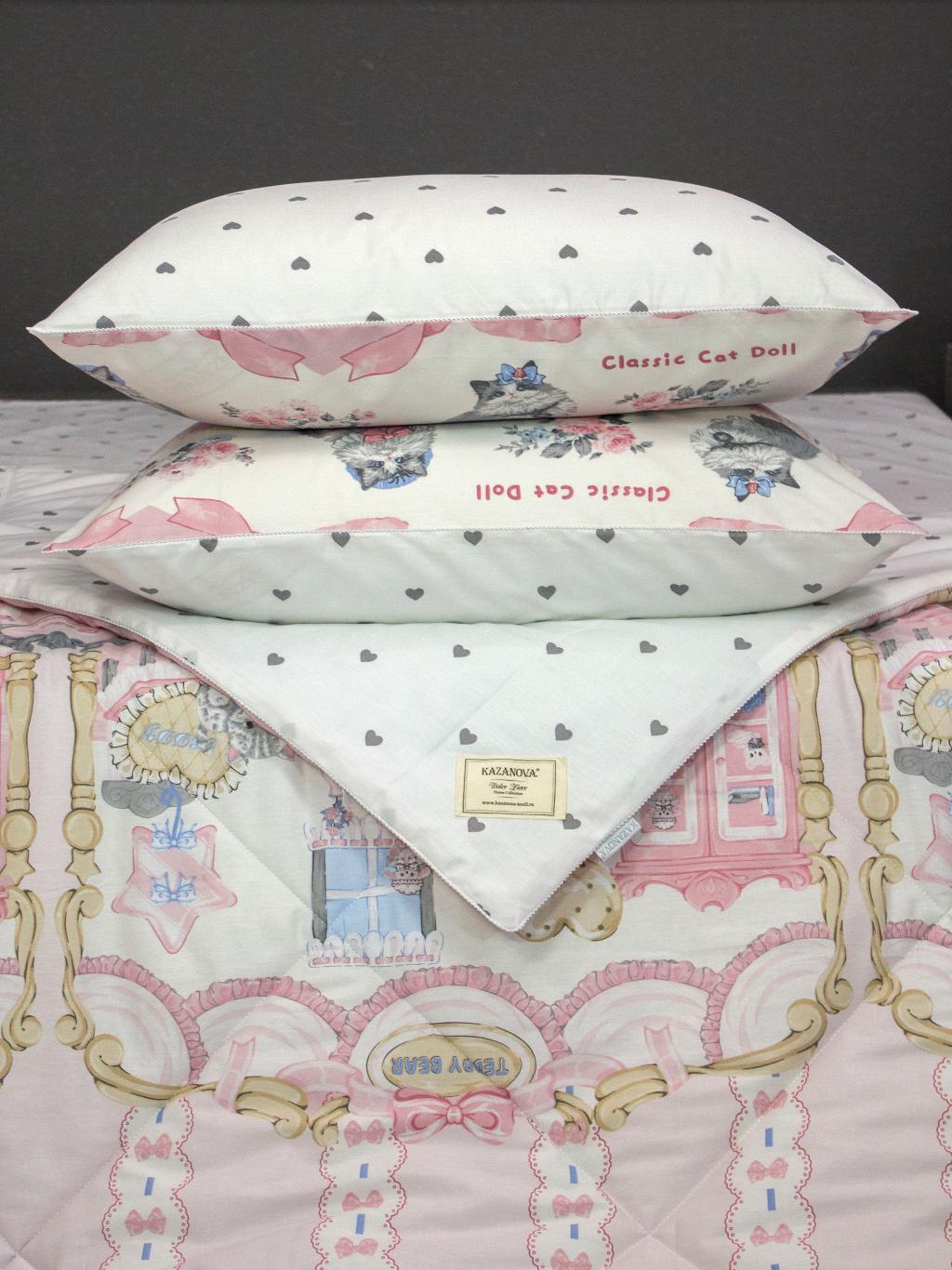 Состав:100% Эковолокно микрогель - одеяло наполнитель; 100% Хлопок - одеяло чехол; 100% Хлопок - наволочки, простынь