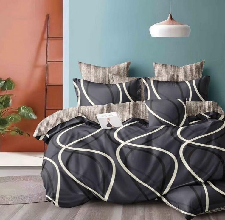 Комплекты выполнены из основной ткани - наружная поверхность пододеяльника и наволочек, и ткани компаньона - простыня, обратная сторона пододеяльника и наволочек.