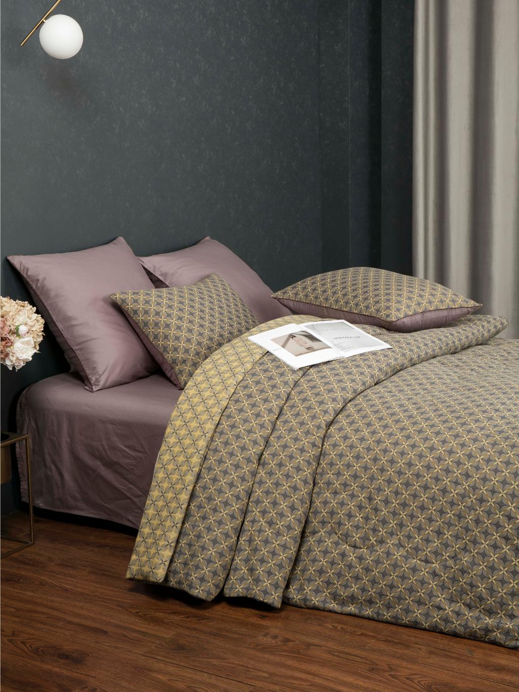 Премиальная коллекция «MOROCCO» представляет собой комбинацию постельного белья и лёгкого одеяла в чехле. В качестве наполнителя одеяла используется эковолокно-микрогель, обеспечивающее отличную терморегуляцию. При пошиве чехла одеяла, простыни и наволочек используется жаккардовый муслин (100% хлопок).