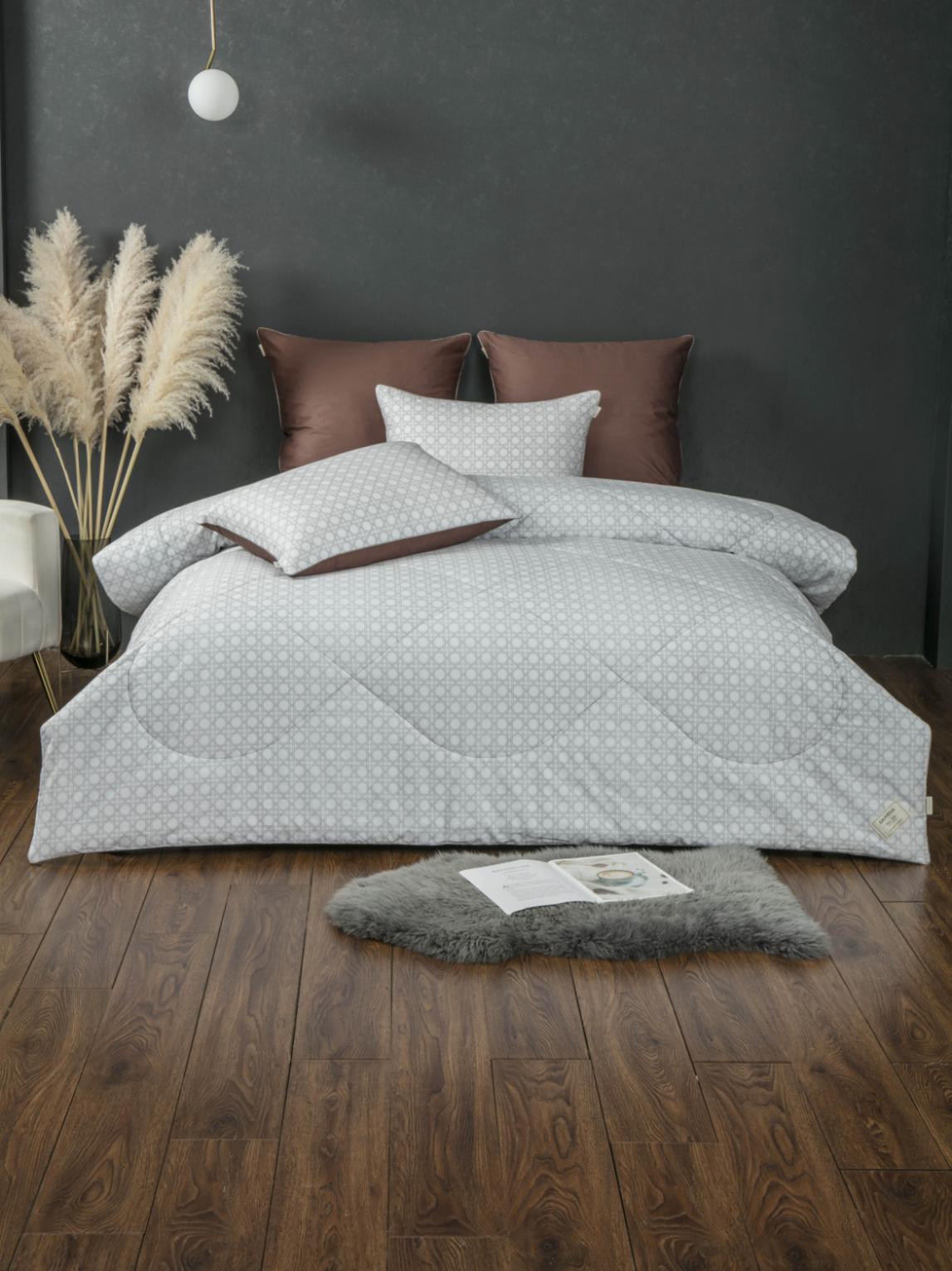 Состав:100% Эковолокно микрогель (полиэстер) - одеяло наполнитель; 50% Хлопок 50% Велюр (вискоза) - одеяло чехол, наволочки 70х70, 100% Хлопок - наволочки 50х70, простынь