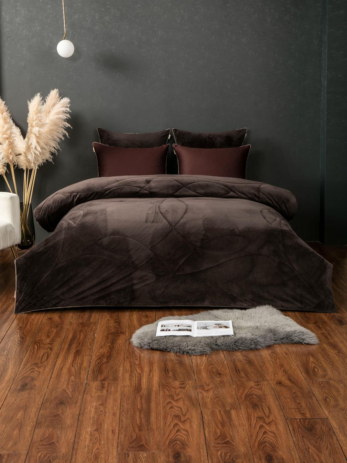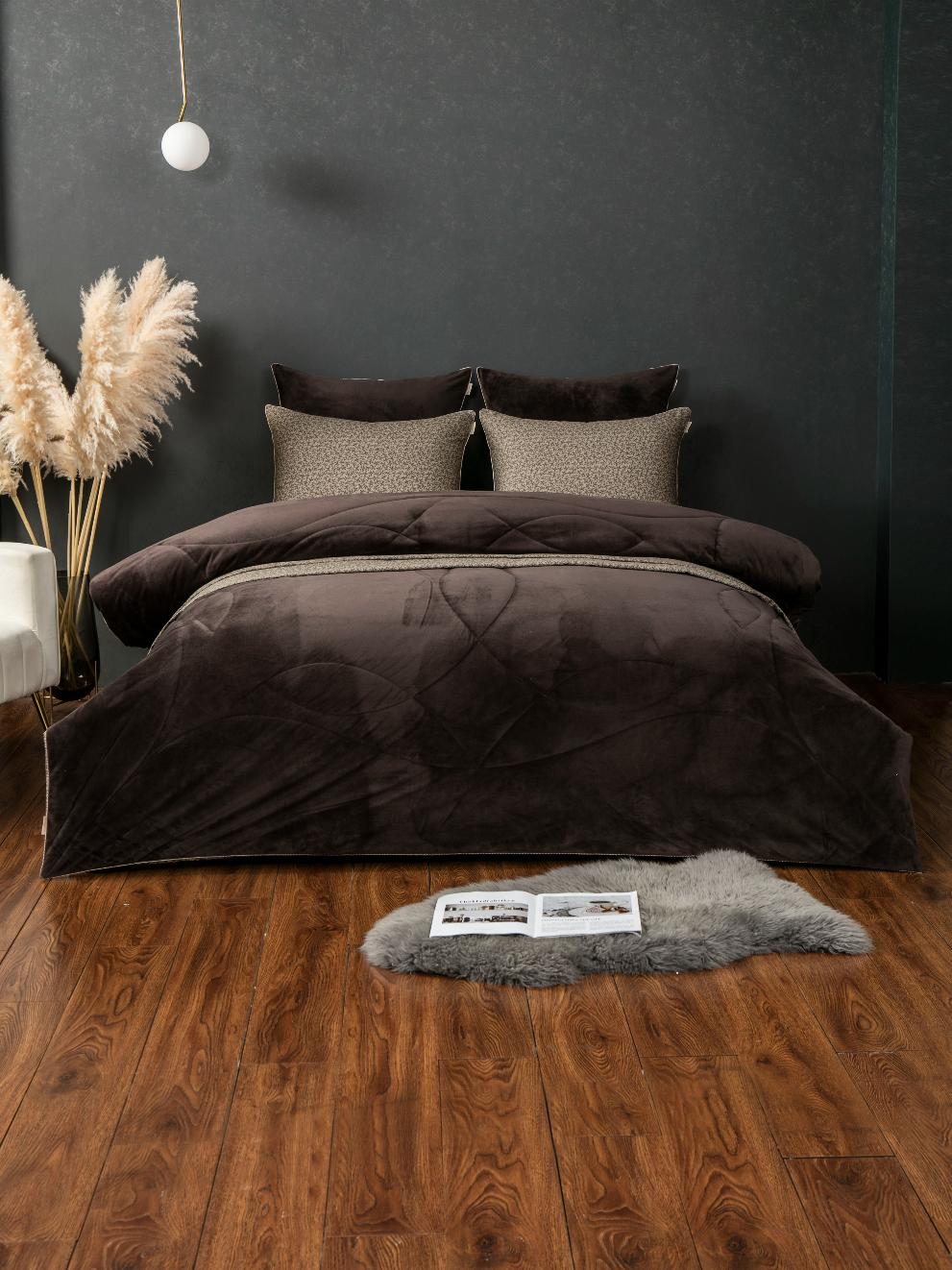 Постельное белье с одеялом "Kazanov.A." Майли (трюфель капучино) Велюр/Egypt Cotton, Евро