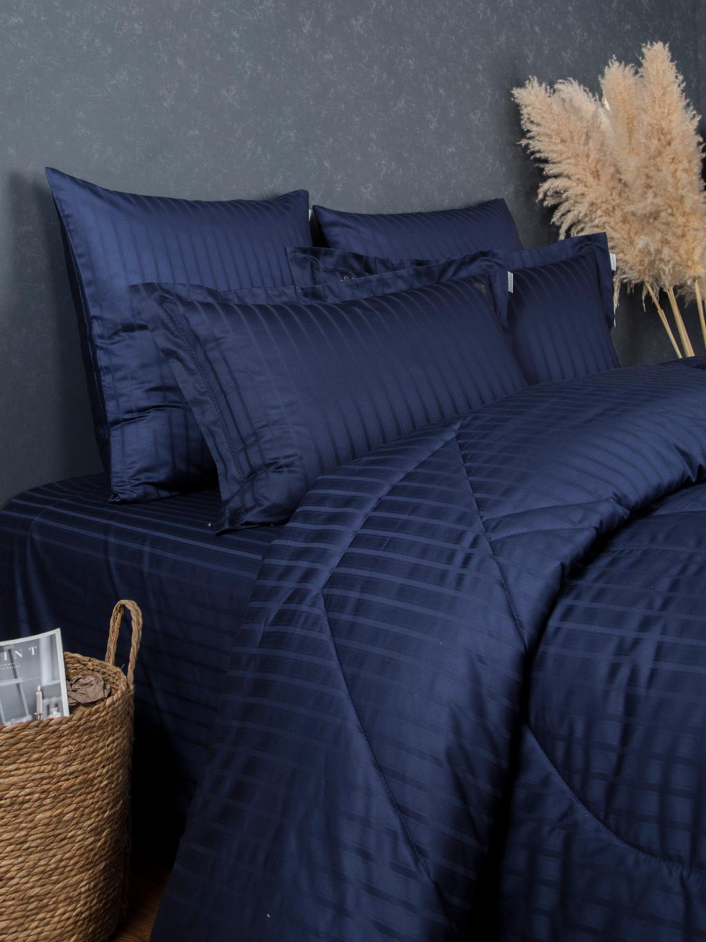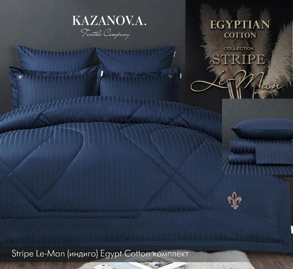 Постельное белье с одеялом "Kazanov.A." Stripe Le-Man (индиго) Страйп Сатин, Семейный
