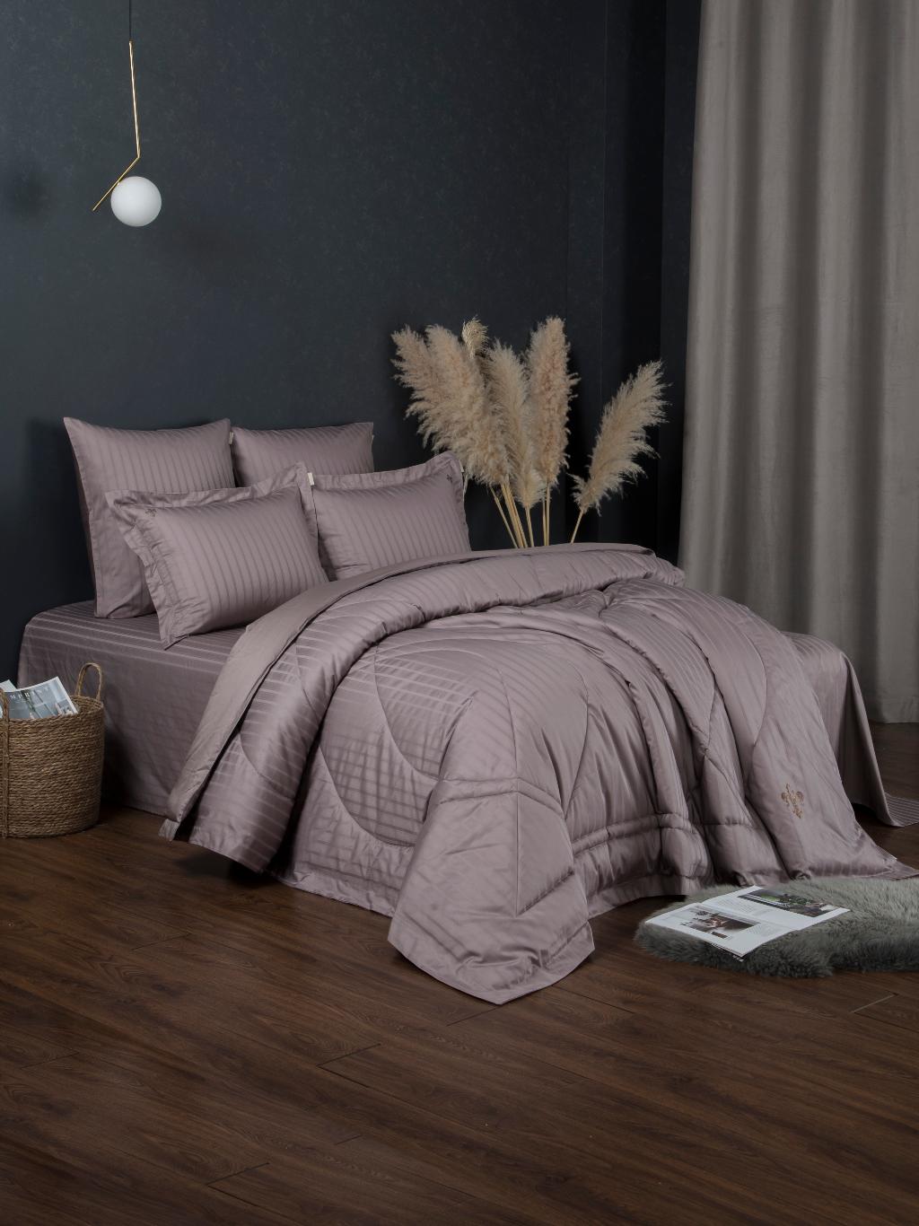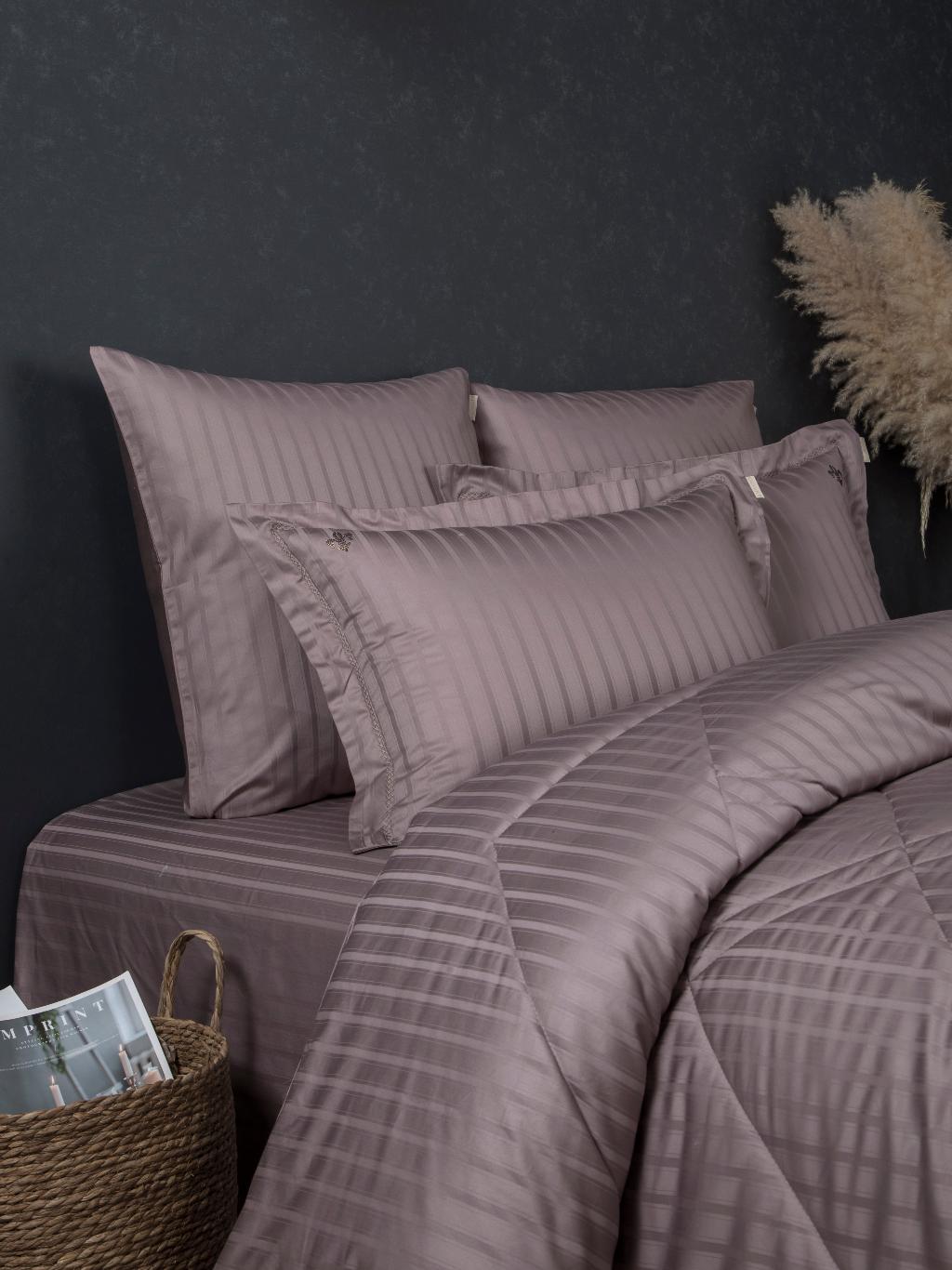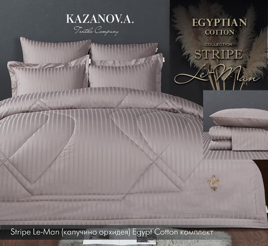 Постельное белье с одеялом "Kazanov.A." Stripe Le-Man (капучино орхидея) Страйп Сатин, Семейный