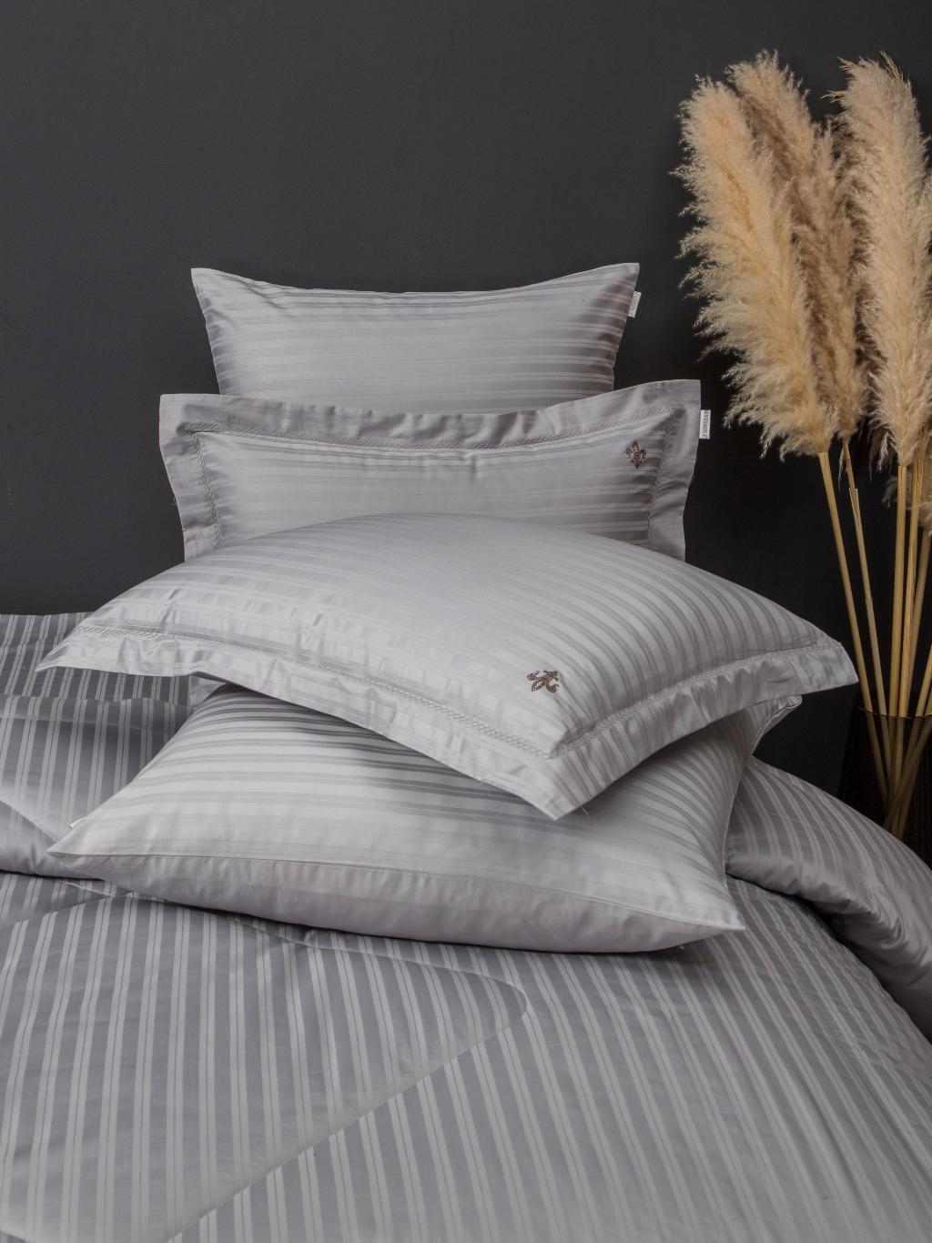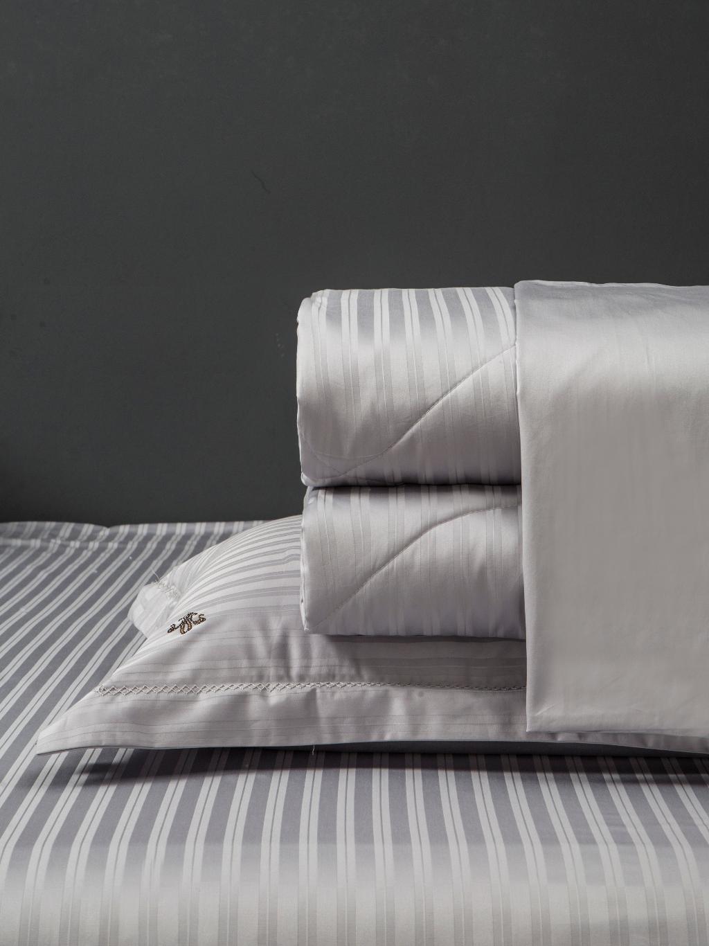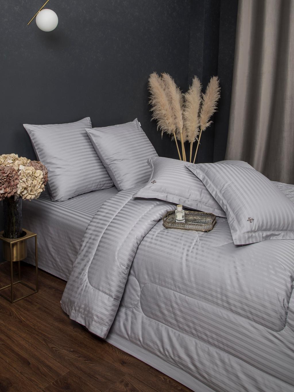 Постельное белье с одеялом "Kazanov.A." Stripe Royal (серебро) Страйп Сатин, Семейный