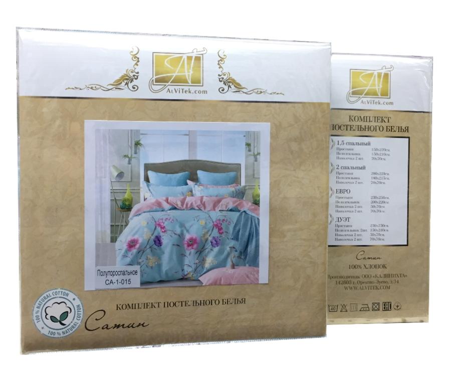 Постельное бельё «Сатин печатный» серии СA торговой марки «АльВиТек» выполнено из 100% хлопка сатина. Для нанесения изображения используется технология реактивной печати.