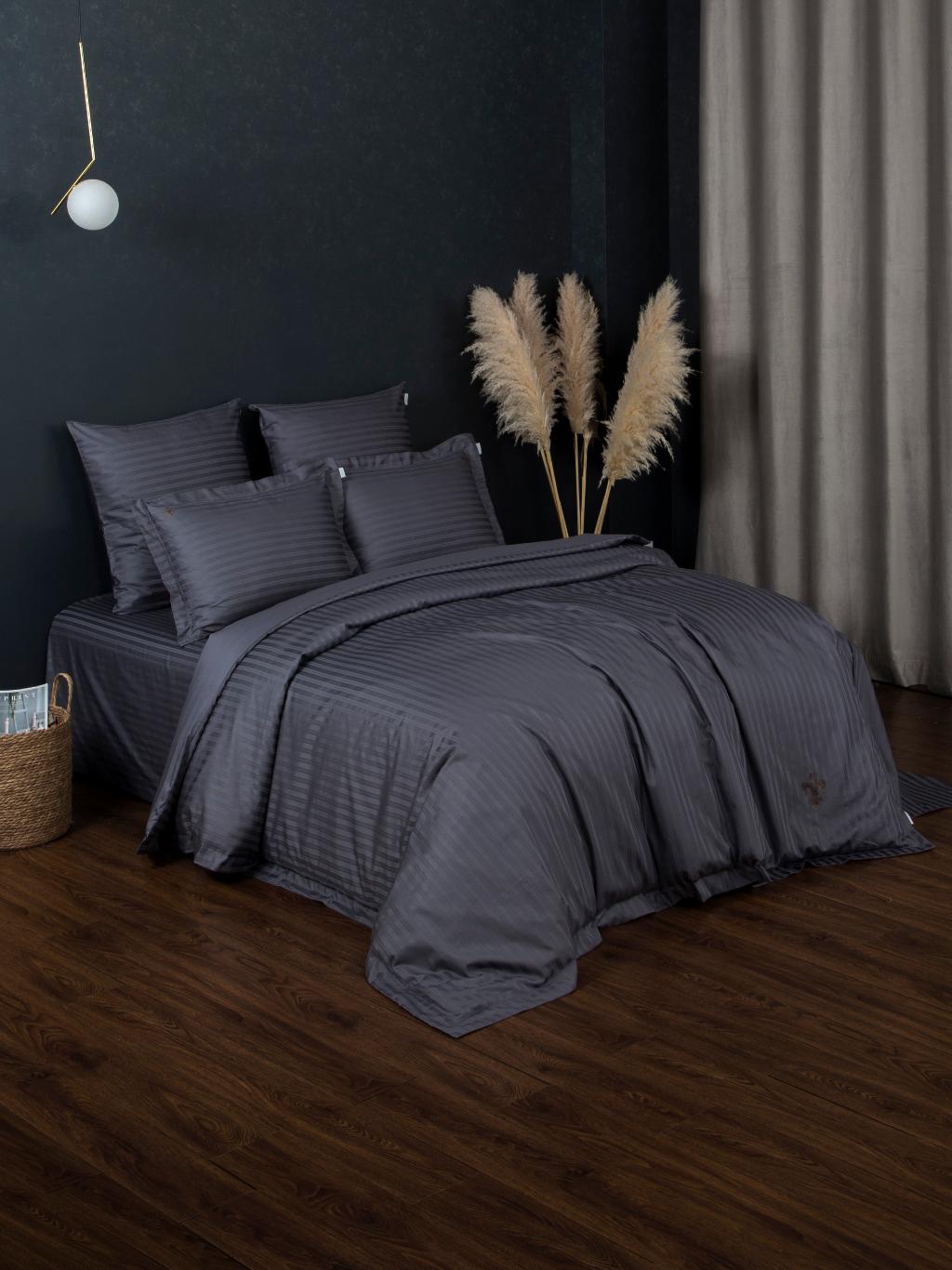 Постельное белье "Kazanov.A." Stripe Royal (графит) Страйп Сатин, Евро