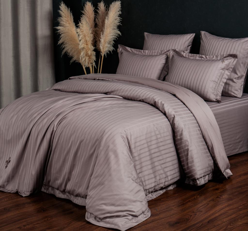 Постельное белье "Kazanov.A." Stripe Le-Man (капучино орхидея) Страйп Сатин, Евро