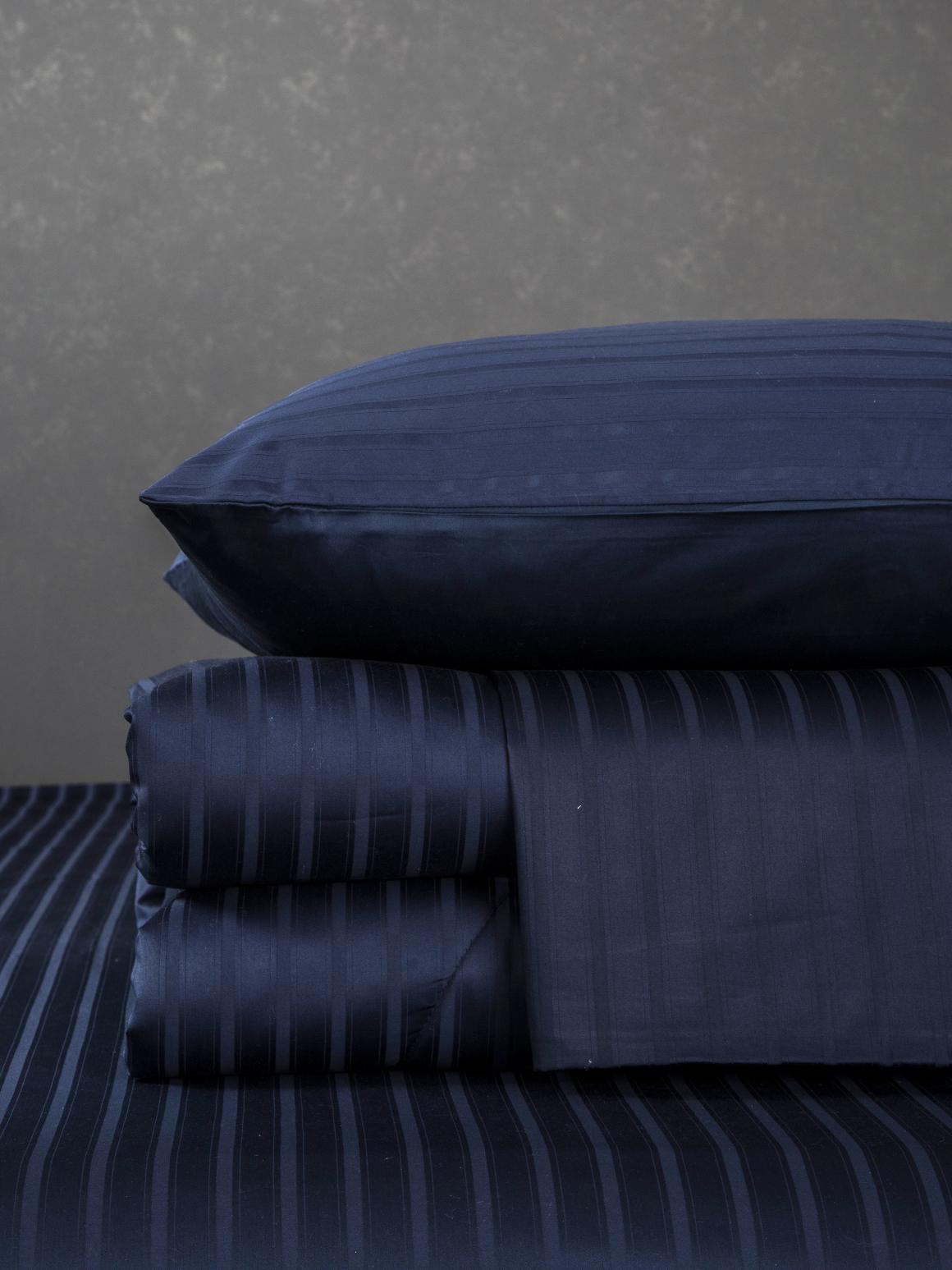 Комплекты постельного белья серии "Stripe Le-Man" выполнено из страйп-сатина на основе волокон египетского хлопка. Страйп-сатин - представляет собой удачное сочетание сатина и жаккарда. Основа материала выполнена из сатина, а полосы той же тональности в жаккардовом переплетении волокон.