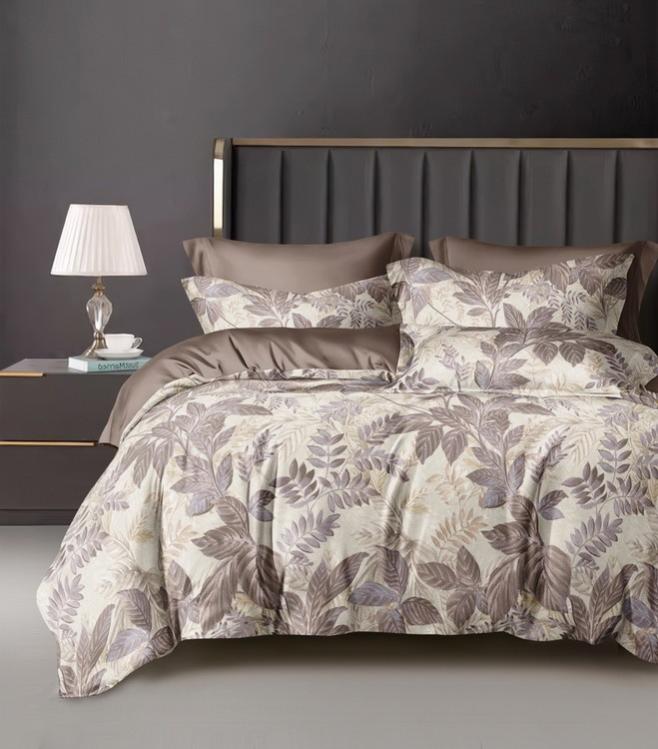 Комплекты выполнены из основной ткани - наружная поверхность пододеяльника и наволочек, и ткани компаньона - простыня, обратная сторона пододеяльника и наволочек.