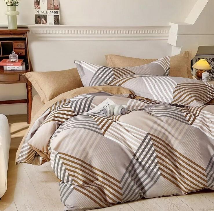 Комплекты выполнены из основной ткани - наружная поверхность пододеяльника и наволочек, и ткани компаньона - простыня, обратная сторона пододеяльника и наволочек.