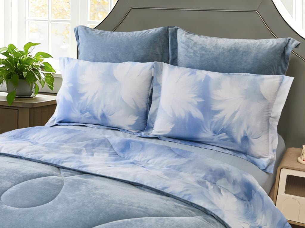 Коллекция "Ренато" представляет собой комбинацию постельного белья и лёгкого одеяла в чехле. В качестве наполнителя одеяла используется экофайбер (нановолокно).