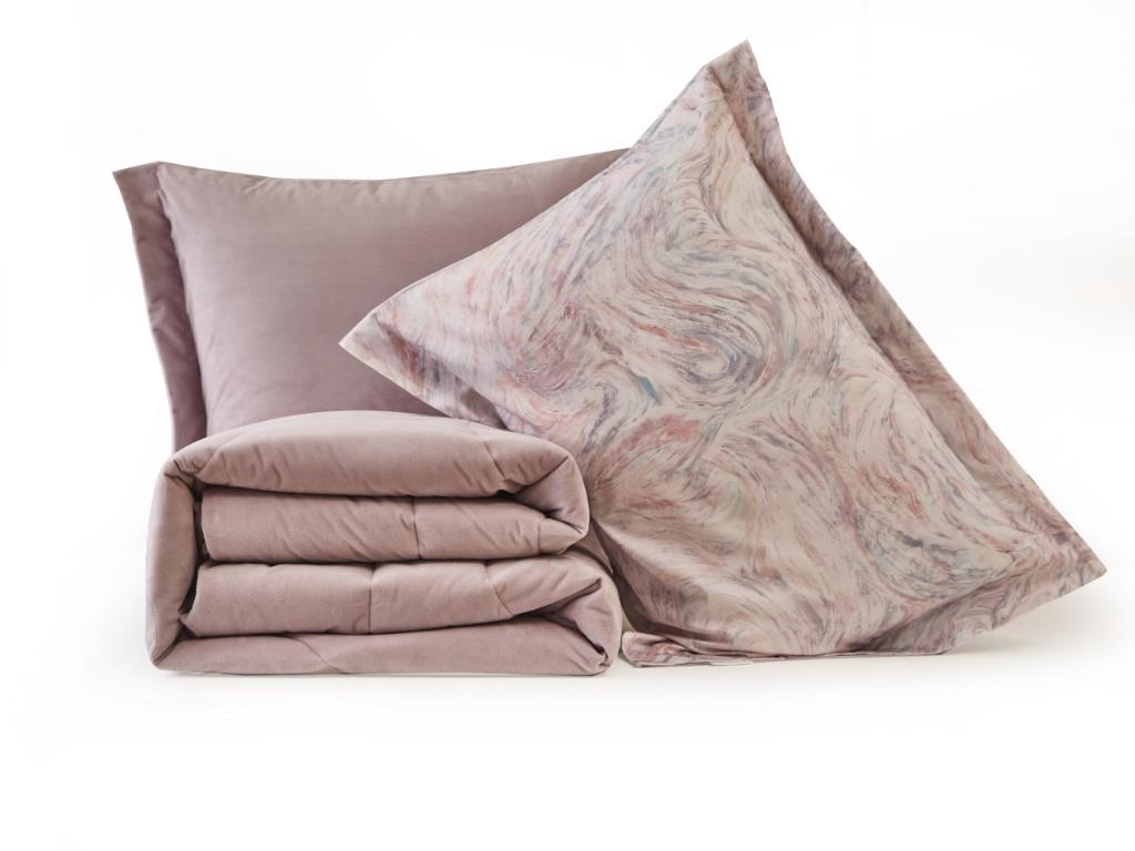 Коллекция "Ренато" представляет собой комбинацию постельного белья и лёгкого одеяла в чехле. В качестве наполнителя одеяла используется экофайбер (нановолокно).