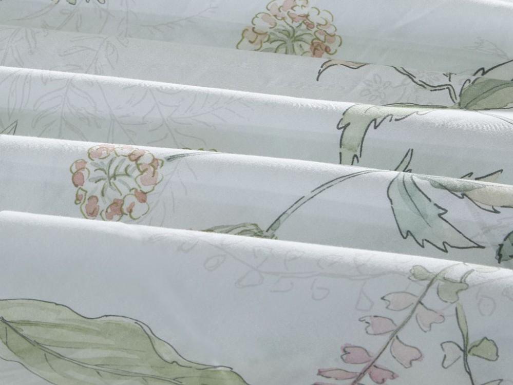Комплекты постельного белья с одеялом торговой марки «Asabella» серии «Сатин печатный» изготовлены из 100% хлопка. Хлопковое происхождение обеспечивает постельному белью этой серии экологичность, гипоаллергенность, воздухопроницаемость и гигроскопичность, а сатиновое плетение — приятные тактильные ощущения вкупе с высокой прочностью и долговечностью. Вместо стандартного пододеяльника в комплектах этой серии используется лёгкое одеяло в чехле из хлопкового сатина с наполнителем из тенсела и искусственного шёлка.