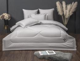 Состав:100% Эковолокно микрогель (полиэстер) - одеяло наполнитель; 100% Египетский хлопок страйп/сатин - одеяло чехол и наволочки; 100% Египетский хлопок страйп - простынь