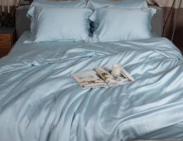 Состав:100% Эковолокно микрогель - одеяло наполнитель; 100% тенсель - одеяло чехол, наволочки и простынь.