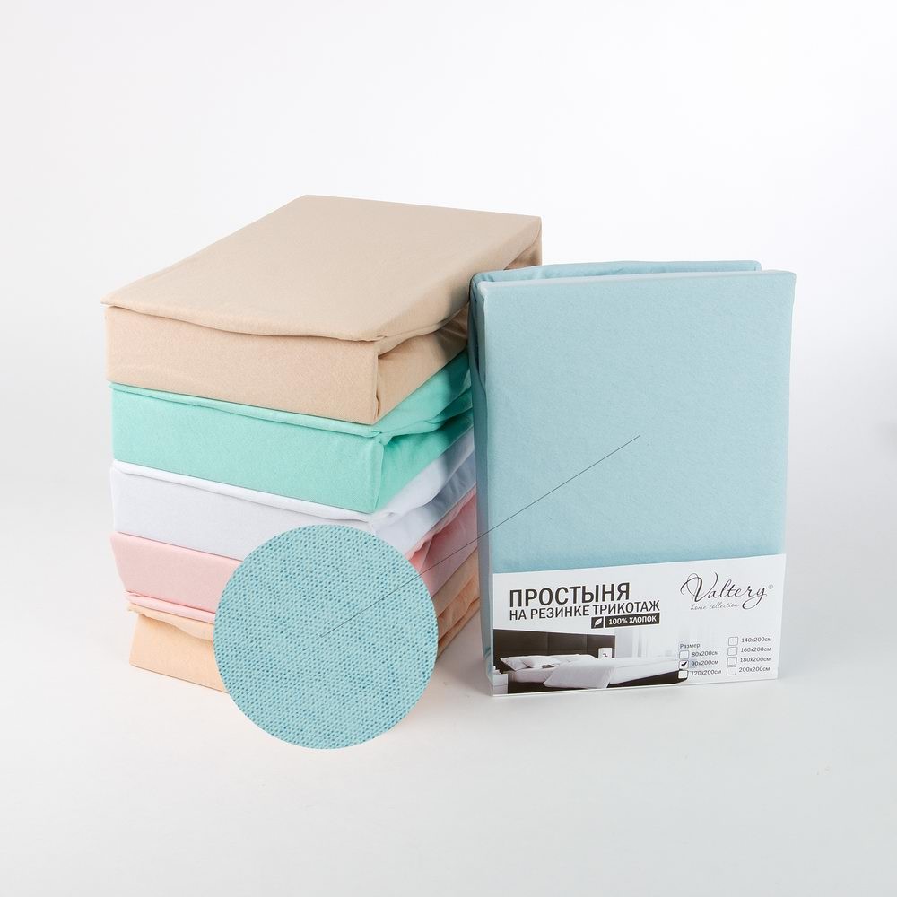 Простынь на резинке трикотажная (PT голубая), 200x200