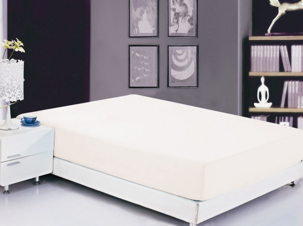 Простынь сатин на резинке белая (PRC-R-15), 160x200