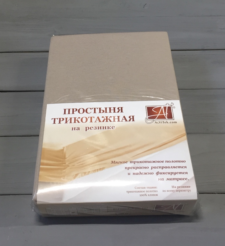 Простыня трикотажная на резинке "АльВиТек" 200х200х20, Какао