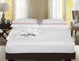 При пошиве однотонных сатиновых простыней класса люкс серии торговой марки "Sharmes" используется 100% хлопок сорта Пима, прошедший процедуру мерсеризации. По сравнению с обычным сатином сатин делюкс обладает более высокой степенью скрученности волокон, что определяет его повышенную прочность и износостойкость и особый «шёлковый» блеск, но в отличие от шёлка он не скользит и практически не мнётся.