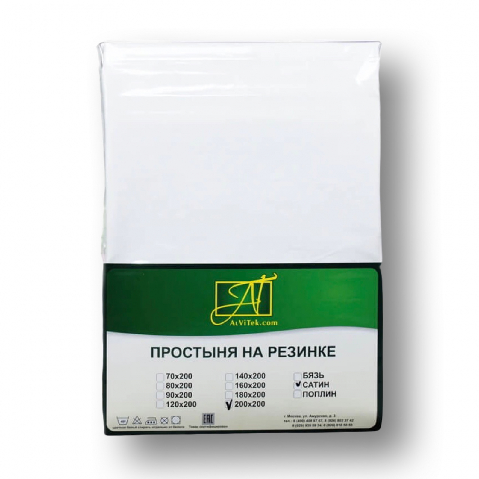 Простыня на резинке "АльВиТек" Сатин однотонный 120х200х25, Белая