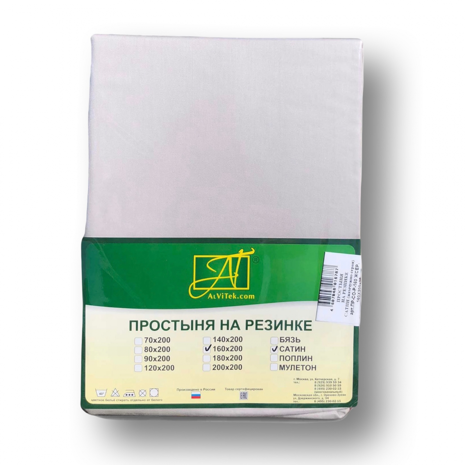 Простыня на резинке "АльВиТек" Сатин однотонный 120х200х25, Жемчужно-серая