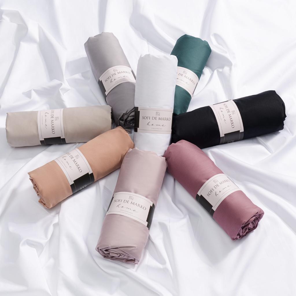 При пошиве простыни на резинке (бортик 30 см) серии Мармис ТМ "«Sofi de Marco»" используется сатин (100% хлопок). Многократное переплетение хлопковых волокон двойного кручения обеспечивает комплектам гладкость и шелковистость, прочность и износостойкость. В качестве ухода рекомендована стирка при температуре 40 °C.