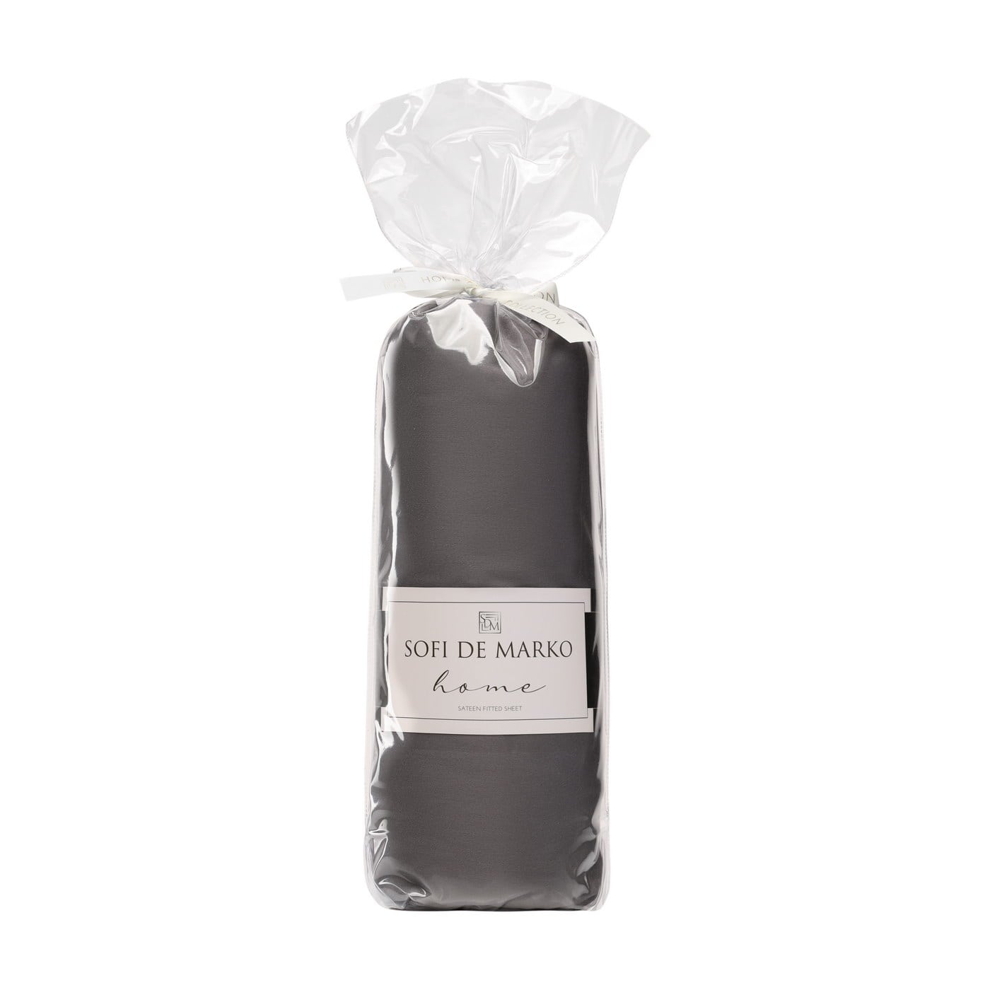 Простыня на резинке "Sofi de Marko" Мармис (тёмно-серая) Сатин, 200х200х30
