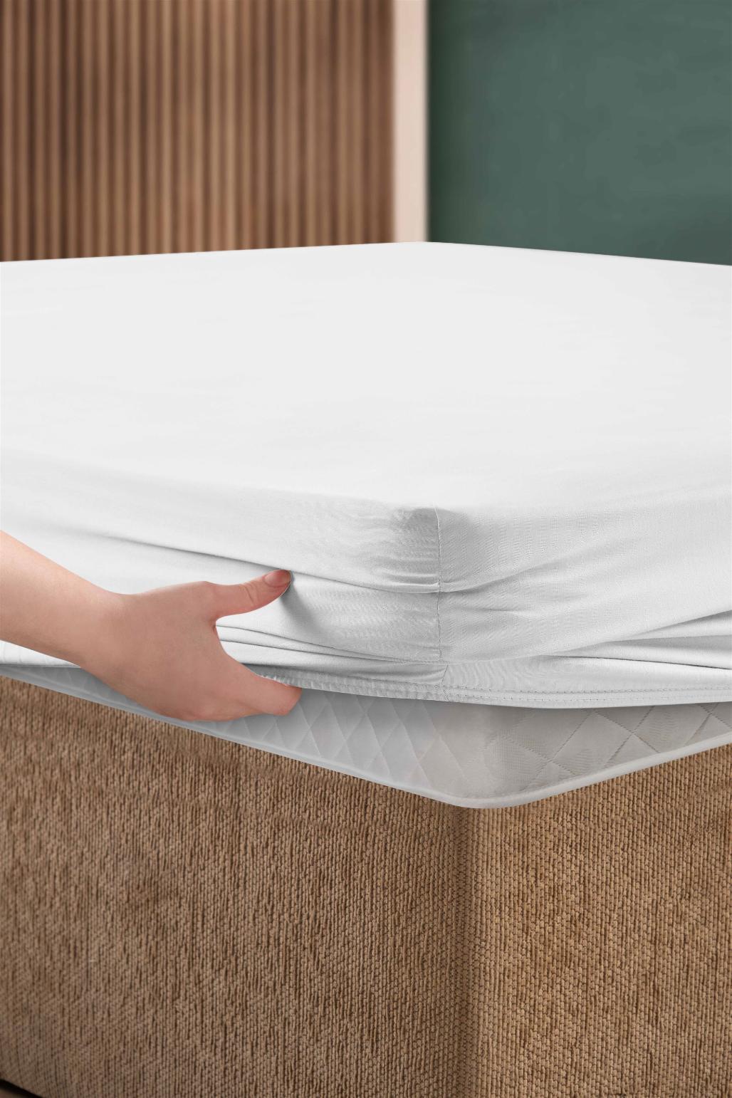 Простынь сатин "DO&CO" на резинке 180х200+30 см SOFT, белый