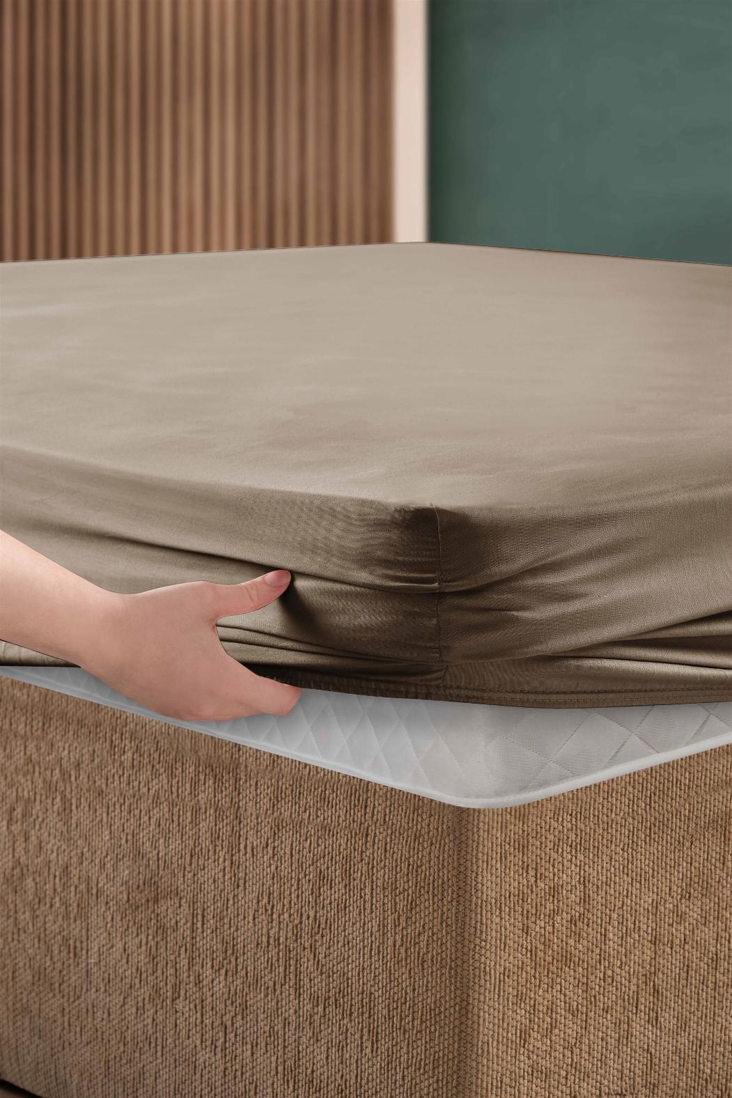 Простынь сатин "DO&CO" на резинке 180х200+30 см SOFT, коричневый