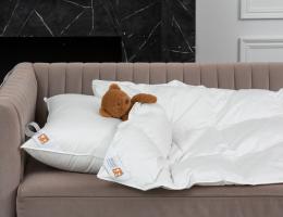 Состав наполнителя:Белый пух сибирского гуся 1 категории (70% пух, 30% мелкое перо)