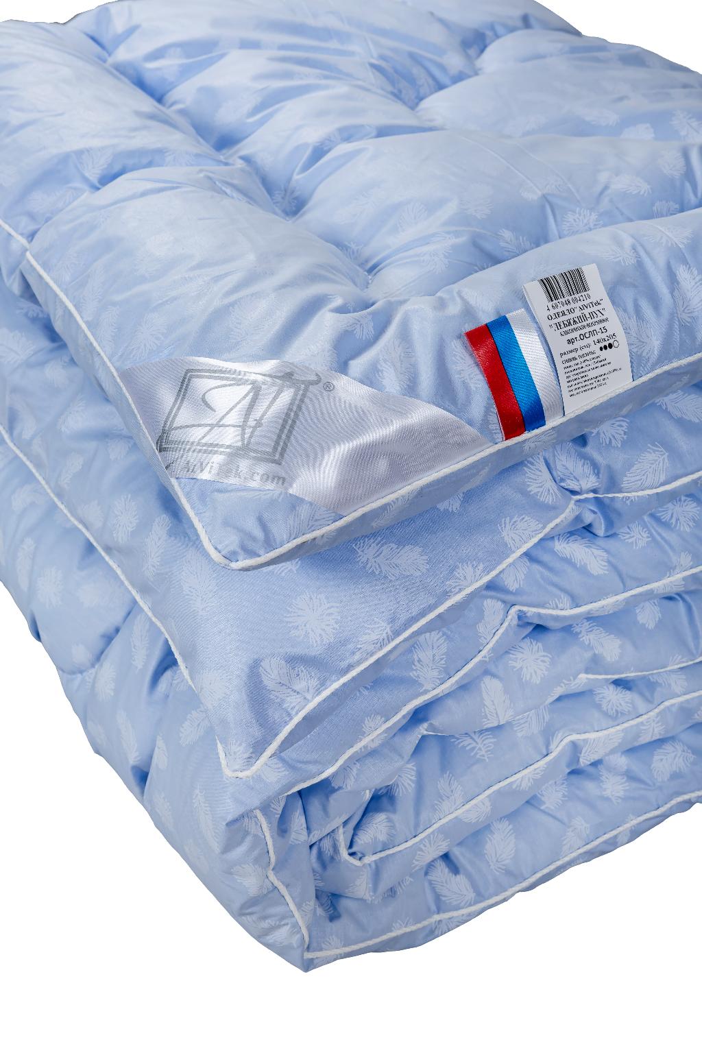 В качестве наполнителя для одеяла «ЛЕБЯЖИЙ ПУХ» используется искусственный лебяжий пух — сверхтонкое полое силиконизированное волокно, спиралевидные пружины которого обладают способностью сжиматься и разжиматься, что обеспечивает правильную микроциркуляцию воздуха во время сна, позволяет изделию быстро восстанавливать форму и сохранять свою функциональность в течение длительного времени. Особо надо отметить гипоаллергенные свойства такого наполнителя, в нём не разводятся клещи и бактерии. Ткань чехла выполнена из 100% хлопка тика.