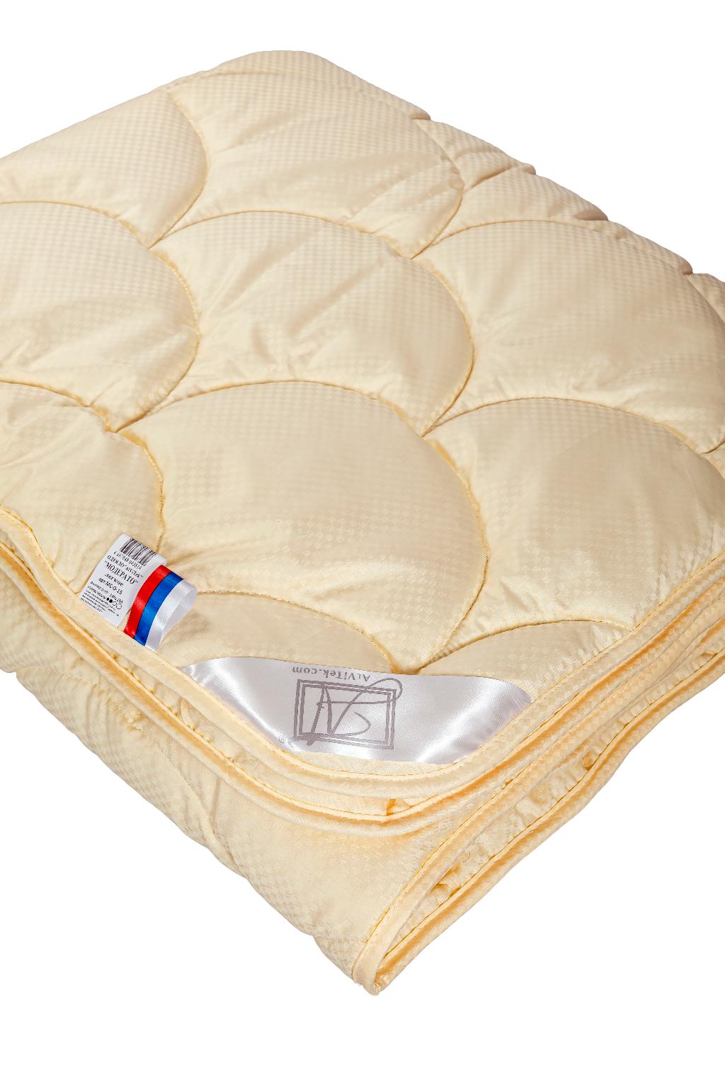 Стёганое одеяло «МОДЕРАТО» выполнено в бежевом сатиновом чехле с жаккардовым рисунком и наполнителем из высококачественной шерсти овцы мериноса. Такое одеяло прекрасно держит тепло, обладает высокой воздухопроницаемостью, не только хорошо поглощает, но и испаряет влагу. Содержащийся в овечьей шерсти животный воск (ланолин) оказывает благотворное действие на мышцы и суставы.