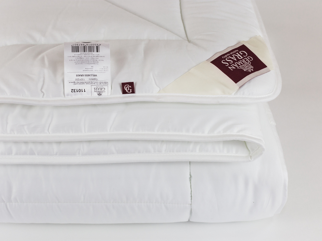 Одеяло серии "WELLNESS GRASS" выполнено в чехле из нежного мако-батиста (100% египетский хлопок). В качестве наполнителя используется инновационное 4-L волокно на основе 100% полиэстера, надёжно защищающее изделие от появления пылевых клещей, грибков и бактерий. Уход - рекомендована стирка при температуре до 40 °С.