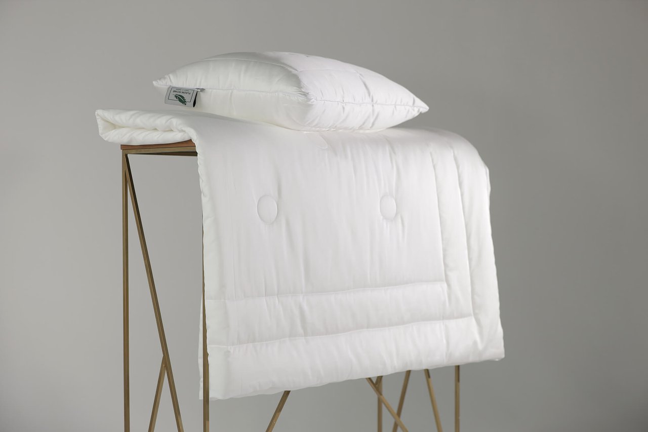 Одеяло коллекции "HOME CHARM" выполнено с наполнителем из тенсела (эвкалиптовое волокно) с добавлением вискозы. Тенсел — материал нового поколения, вырабатываемый из волокон древесной целлюлозы. Особо надо отметить гипоаллергенные свойства такого наполнителя, в нём не разводятся клещи и бактерии. Чехол одеяла - высококачественный сатин (60% тенсел, 40% хлопок) с кантом.