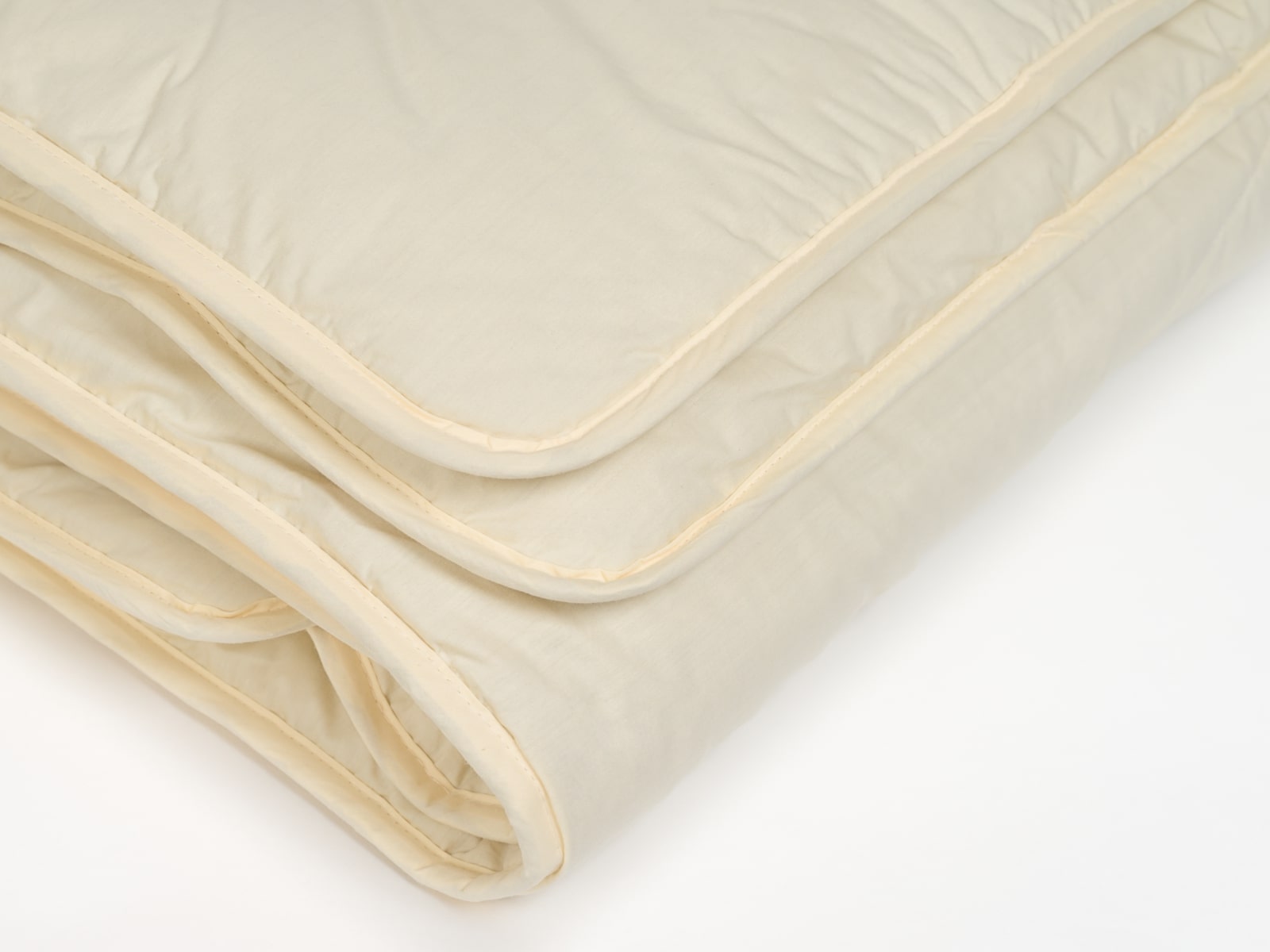 Стёганое одеяло из коллекции «Дар Востока» торговой марки «Nature’S» выполнено в чехле из 100% хлопка тика и наполнителем из верблюжьей шерсти. Верблюжья шерсть содержит природный животный воск (ланолин), который при температуре человеческого тела впитывается через кожу, снимая напряжение в мышцах и суставах. Полая структура волокон обеспечивает верблюжьему одеялу высокую теплоизоляцию, лёгкость и гигроскопичность