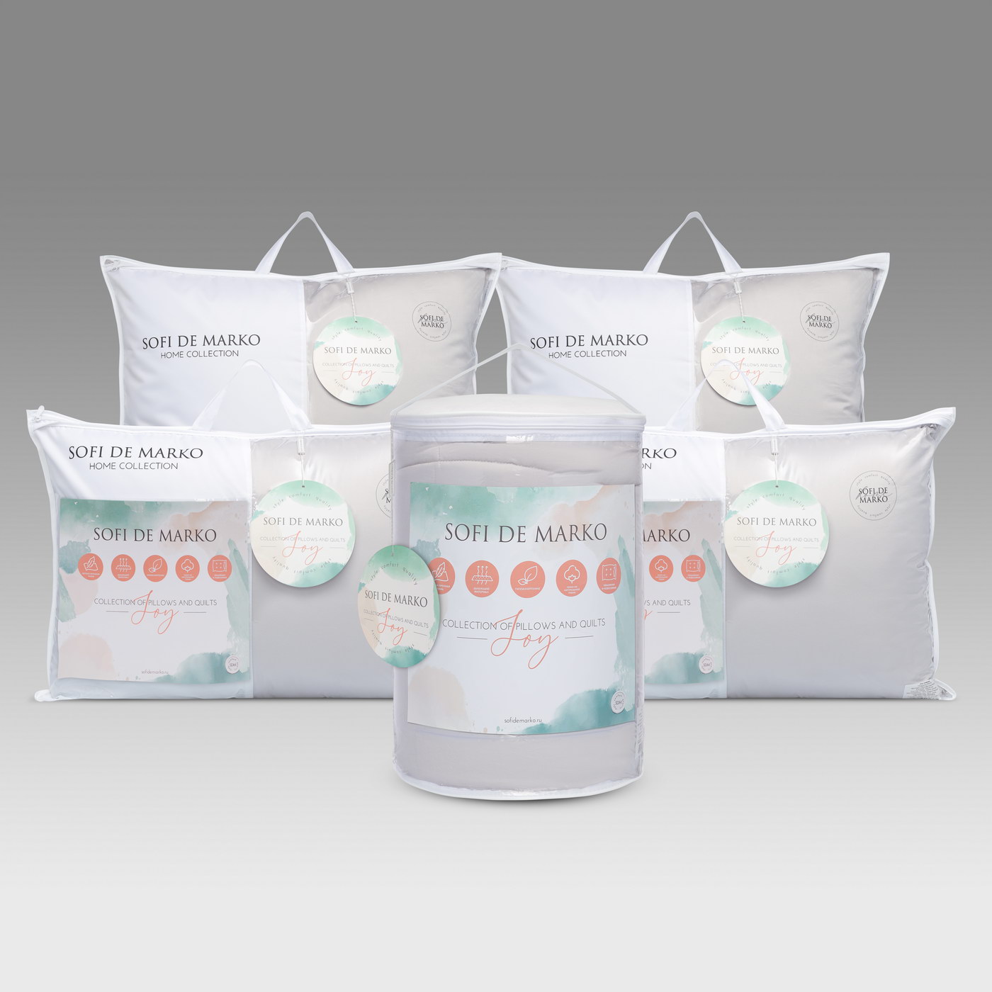 Одеяло JOY торговой марки "Sofi de Marko" выполнено в чехле из сатина с наполнителем из шёлка и искусственного лебяжьего пуха, спиралевидные пружины которого обладают способностью сжиматься и разжиматься, что обеспечивает правильную микроциркуляцию воздуха во время сна, позволяет изделию быстро восстанавливать форму и сохранять свою функциональность в течение длительного времени.