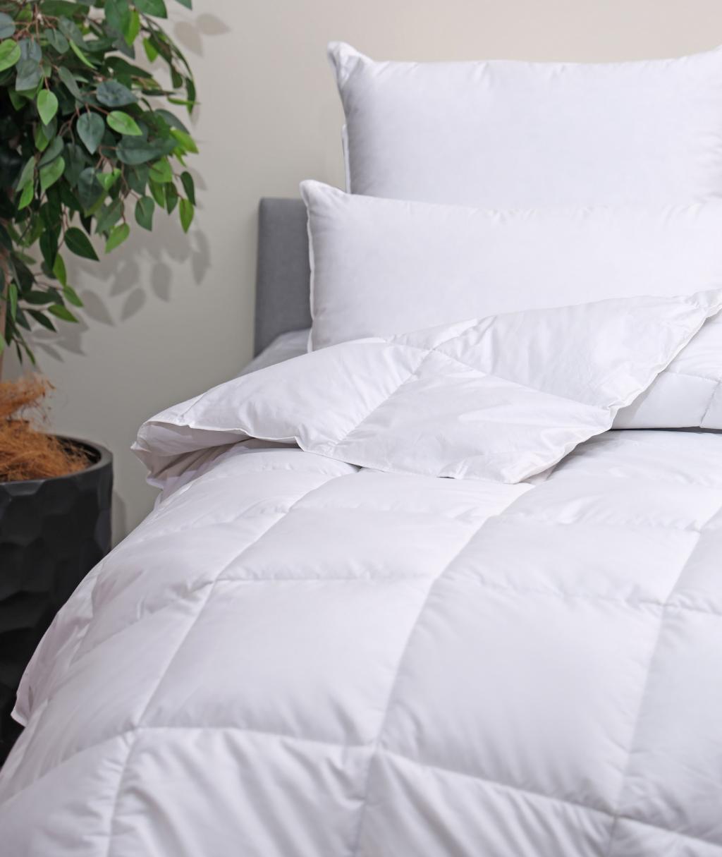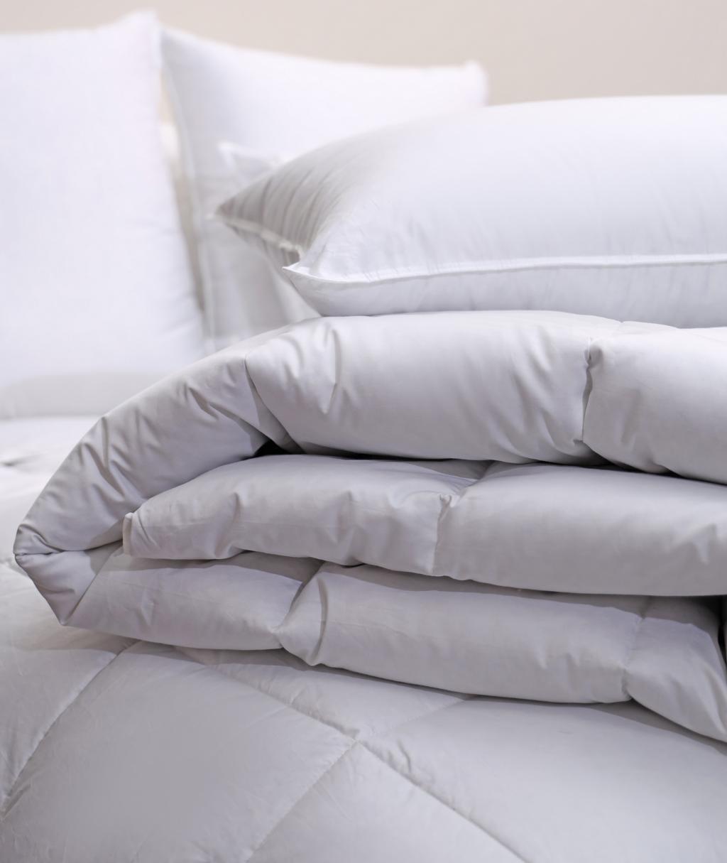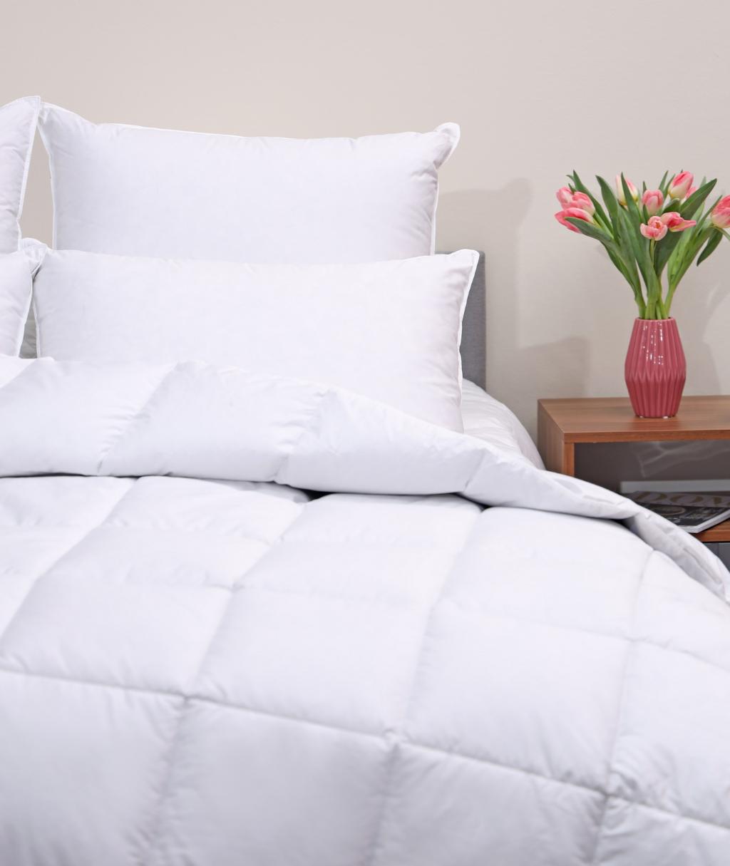 Одеяло серии "Pure New" выполнено в хлопковом чехле с наполнителем из пухо-перовой смеси (50% утиный пух, 50% утиное перо).
