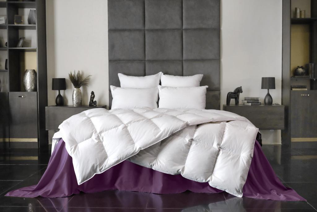 Для производства стёганого одеяла серии "Ornella" ТМ "Primavelle" в качестве наполнителя используется белый гусиный пух сибирского гуся 1-й категории (70% пух, 30% перо) с показателем упругости Fill Power не менее 700 единиц, что обеспечивает изделию оптимальный уровень упругости и комфортности. Ткань чехла - 100% хлопок тик.