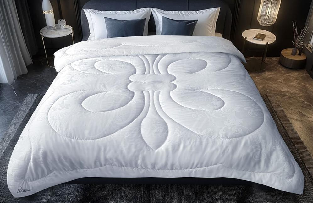 Одеяло серии "Silk Premium" выполнено чехле из 100% тенселя с наполнителем из смеси волокон натурального шелка и микроволокна (80% сорт Малбери, 20% микроволокно).