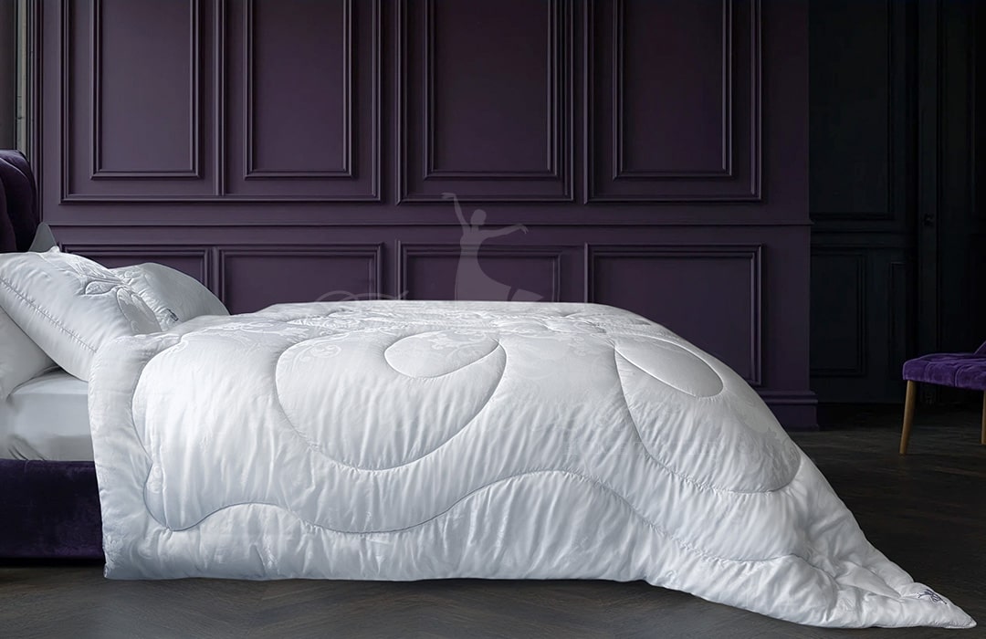 Одеяло серии "Silk Premium" выполнено чехле из 100% тенселя с наполнителем из смеси волокон натурального шелка и микроволокна (80% сорт Малбери, 20% микроволокно).