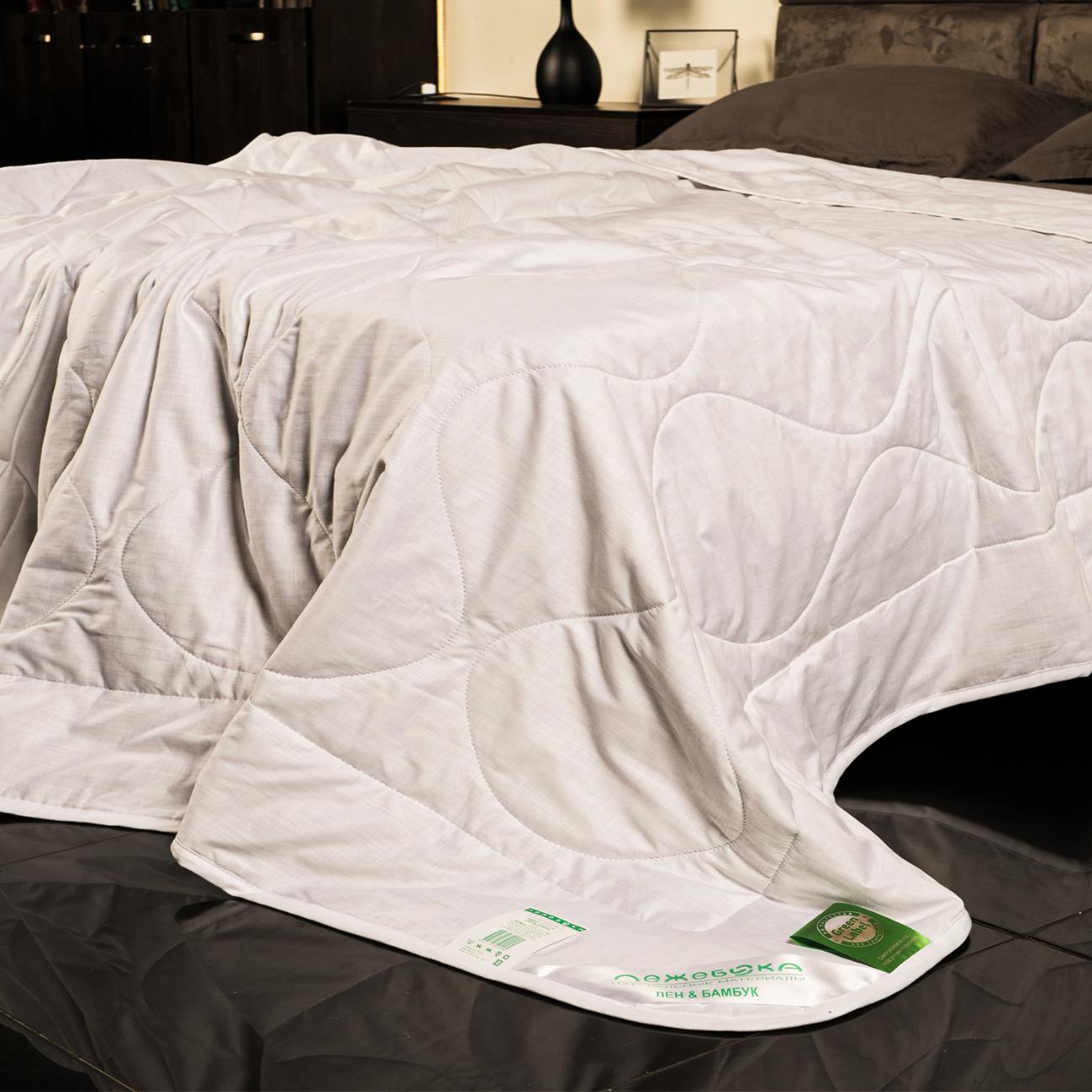 Одеяло серии «Лён и Бамбук» торговой марки "Лежебока" выполнено в чехле из сатина (60% хлопок, 30% бамбук, 10% лён). В качестве наполнителя для одеяла используется льняное и бамбуковое волокно.