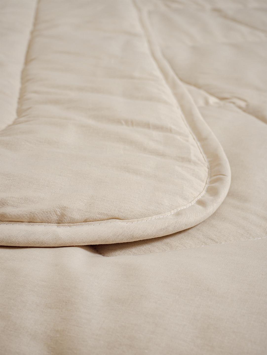 Такое одеяло обладает отличной воздухопроницаемостью, обеспечивает высокий влагообмен, быстро поглощая и испаряя влагу, оставаясь при этом сухим. Содержание в химическом составе льна кремния и селена объясняет высокие антибактериальные свойства льняного волокна..