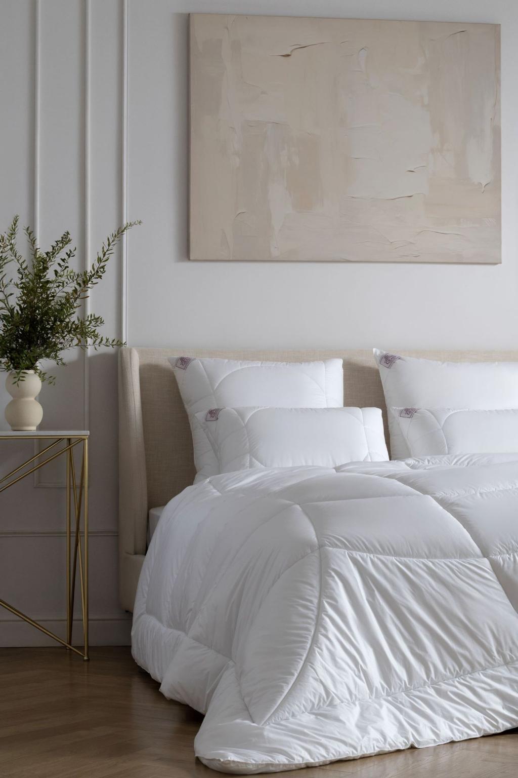 Одеяло серии "Non-Allergenic Lux Grass" выполнено в чехле из мако-батиста на основе волокон египетского хлопка. В качестве наполнителя используется инновационное 4-L волокно (упругий микрогель) на основе 100% полиэстера, надёжно защищающее изделие от появления пылевых клещей, грибков и бактерий. Уход - рекомендована стирка при температуре до 40 °С.