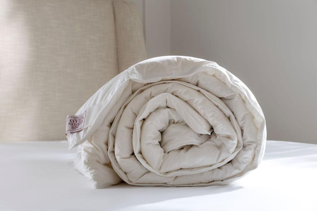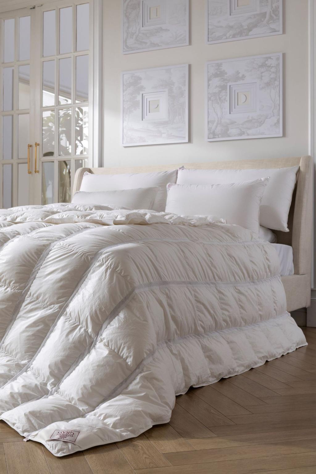 Одеяло пуховой серии "ROYAL DOWN GRASS" выполнено в чехле из мако-батиста (100% Египетский хлопок), прошедшего финишную обработку SanProCare® Sensitive, что позволяет ткани добиться состояния "пуховой мягкости". Двойная отстрочка по периметру чехла не только позволяет одеялу сохранять первоначальную форму, но и предотвращает возможную миграцию пуха. В качестве наполнителя используется отсортированный вручную 100% белый гусиный пух высшего качества с показателем упругости Fill Power не менее 800 единиц. Для улучшения воздухообмена и терморегуляции одеяла дополнили перфорированными вставками. Петли по периметру обеспечивает надёжное крепление изделия к пододеяльнику.