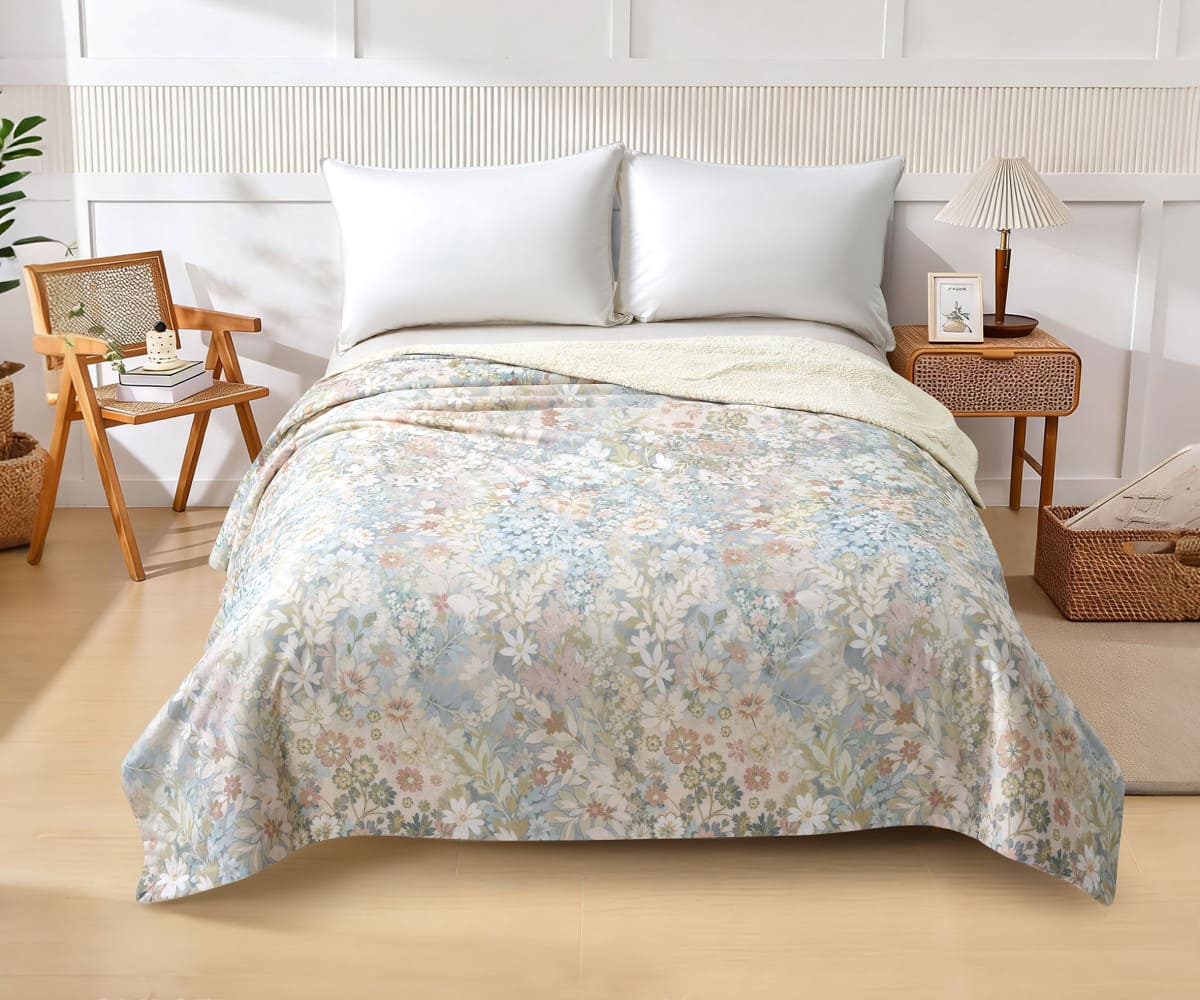 Наружная сторона одеяла серии "SHF" выполнена из 100% хлопка. Оборотная сторона - шерпа, представляющая собой искусственный материал на основе волокон полиэстера, имитирующий искусственный мех.
