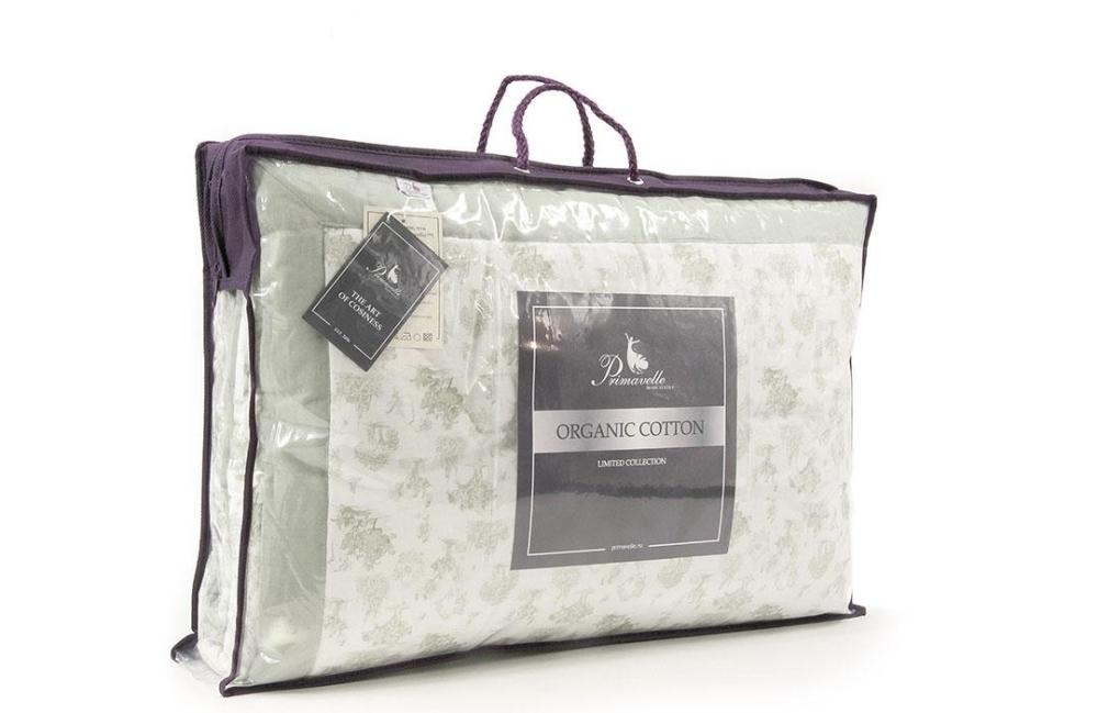 При пошиве одеяла-покрывала (комфортера) серии "Organic Cotton" торговой марки "Primavelle" в качестве ткани чехла используется двуслойный сатин (100% органический хлопок). Плотность ткани - 125 г/м2. Наполнитель: гипоаллергенный экофайбер (100% полиэстер).