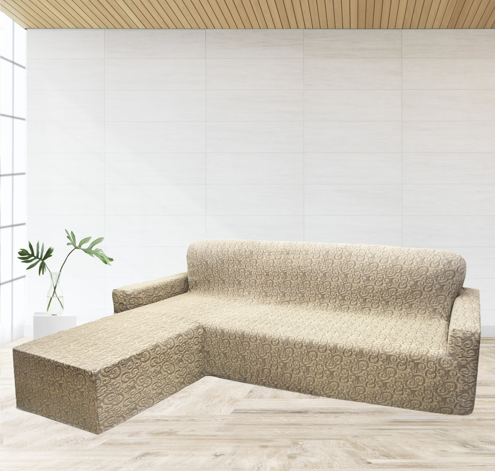 Чехол на угловой диван Karteks "Классика" с оттоманкой KAR 013-07 (левый), кремовый