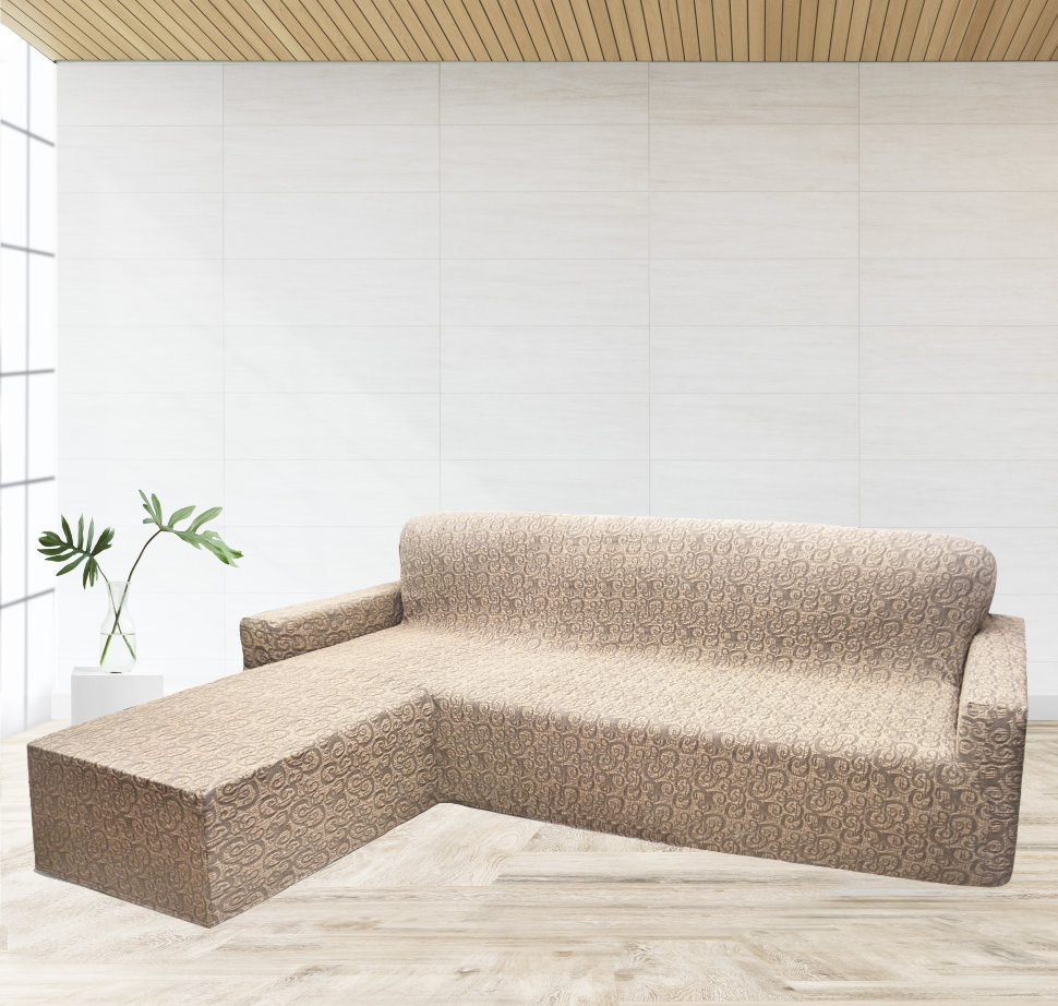 Чехол на угловой диван Karteks "Классика" с оттоманкой KAR 013-10 (левый), натуральный